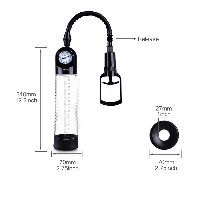Придайте вашей уверенности в себе, самооценке и улучшите ваши отношения.Насос использует воздух для увеличения размера вашего пениса.Цилиндр крепится к мягкой резиновой втулке.Просто поместите этот рукав поверх вашего пениса, а затем равномерно прокачивайте вручную.Когда лампа перекачивается, воздух вытягивается из цилиндра, создавая вакуум.Этот вакуум помогает втягивать больше крови в пенис, укрепляя ткань и вызывая эрекцию.Вакуум расширяет ткань и приводит к увеличению размера пениса.Простое применение позволяет использовать в вашем собственном доме или в любой частной зоне.Все-естественно: Без лекарств, инъекций или операций.Быстро и безболезненно увеличивайте свою мужественность.Прозрачная камера с измерениями, чтобы вы могли видеть результаты.Легкая Кнопка продувки клапана.