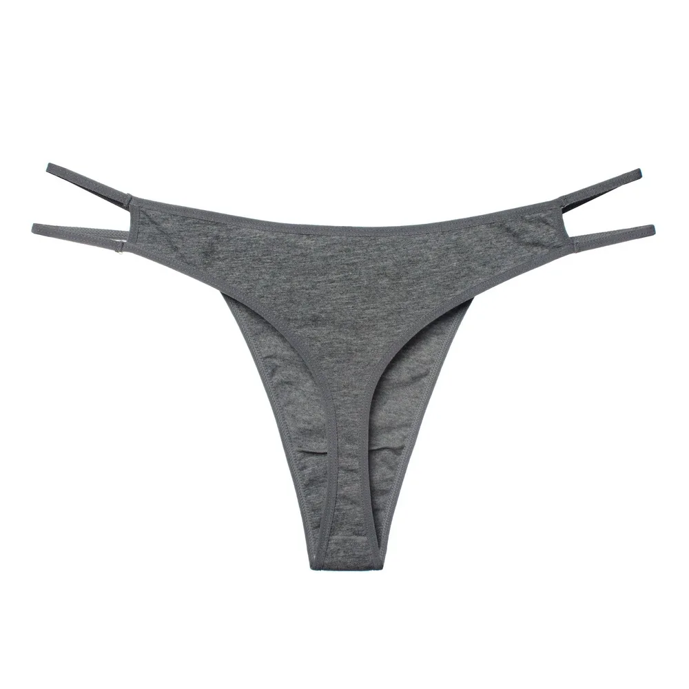 Двойной ремень хлопковые трусы Для женщин простой стринги для танцев высокий разрез футболка Трусы-стринги Дамы с низкой талией, сексуальные женские трусики-стринги сексуальные