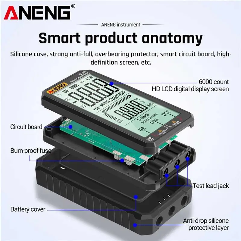 ANENG 620A Цифровой мультиметр-транзистор тестеры 6000 отсчетов истинный RMS автоматический измеритель электрической ёмкости измерение температурного сопротивления