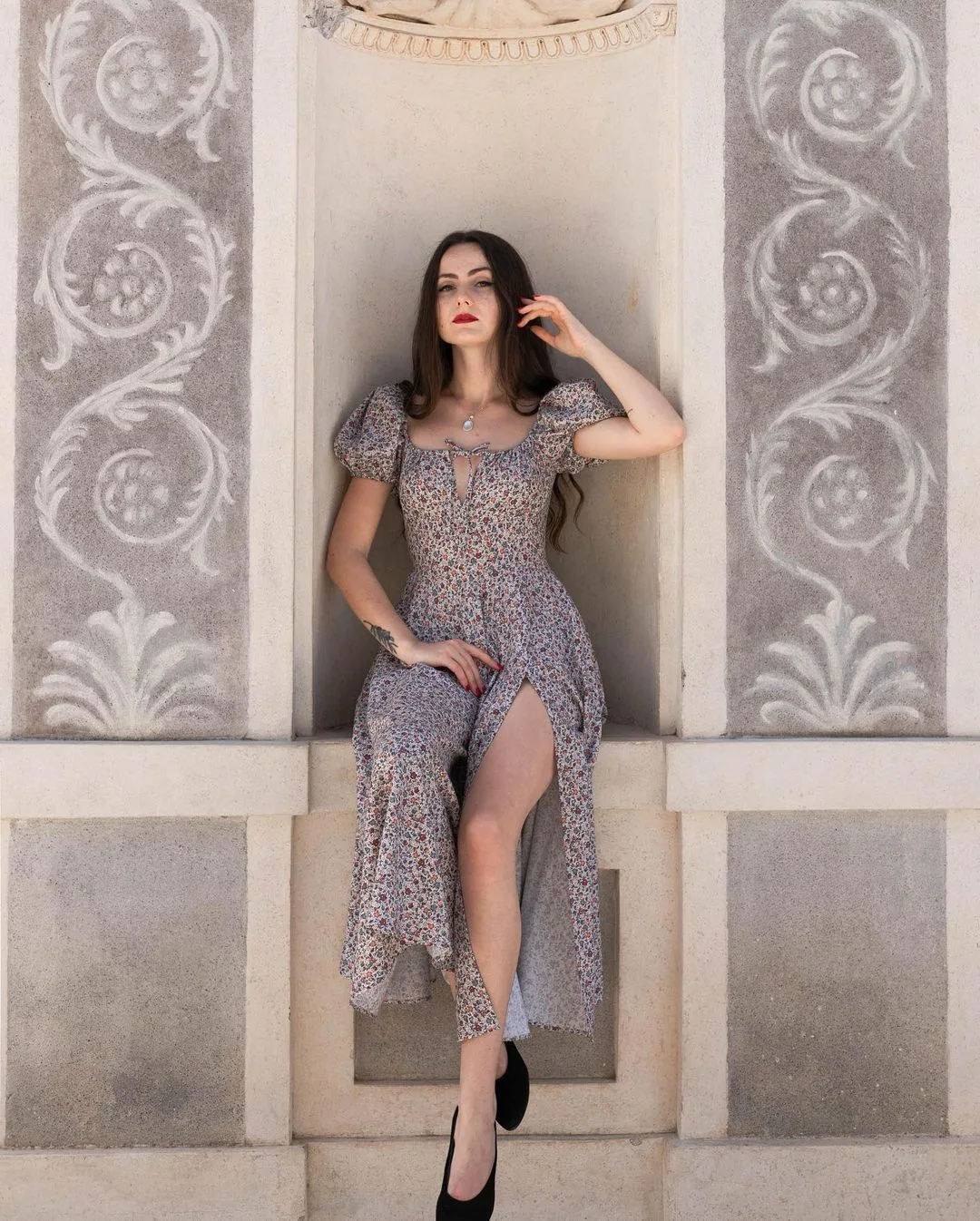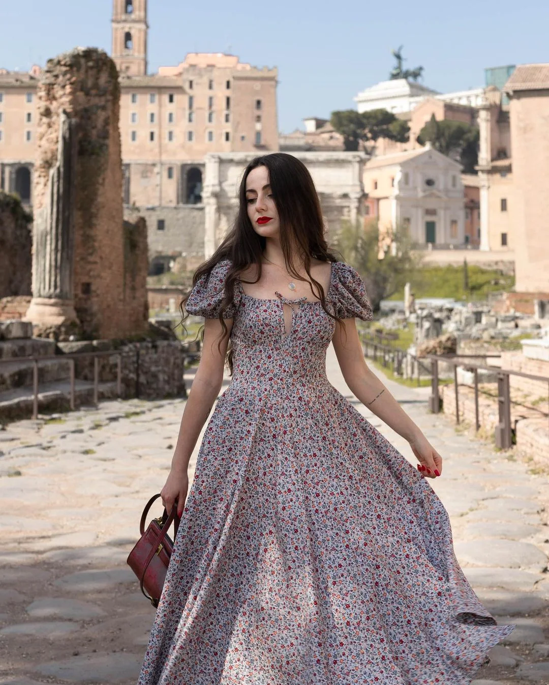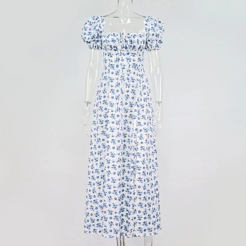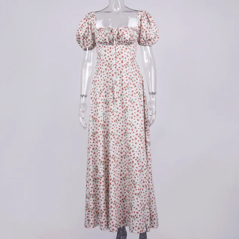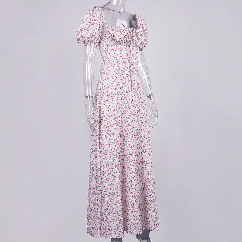 Летнее платье с пышными рукавами и цветочным принтом, элегантное со...