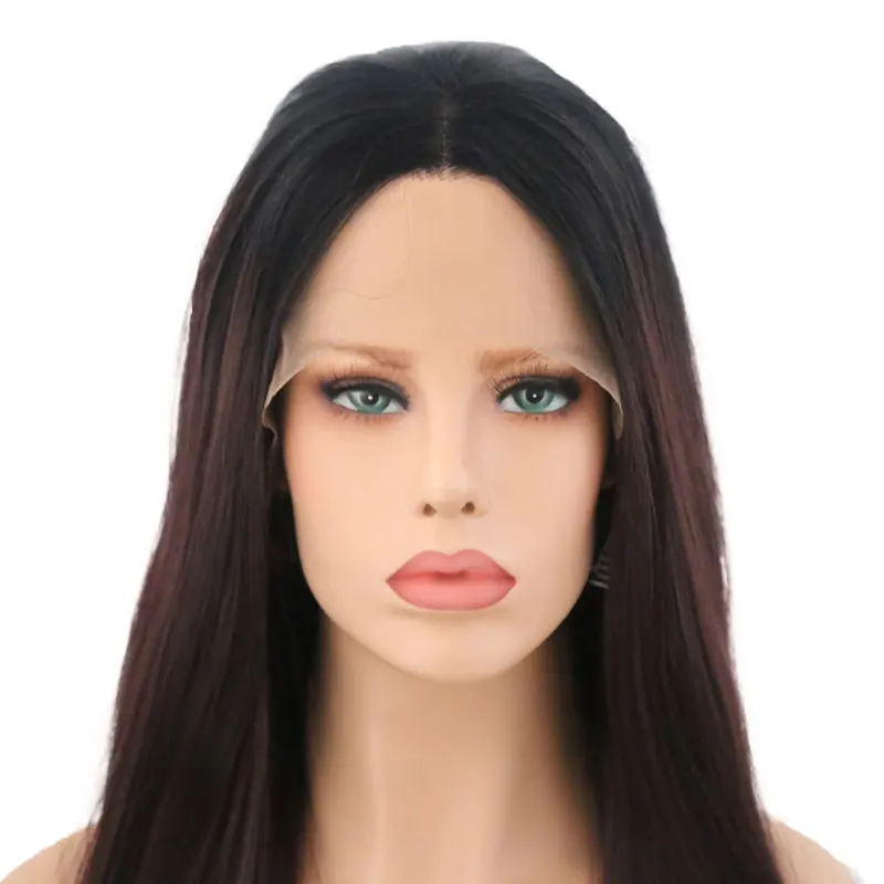 Темный коричневый прямой синтетический кружевной передний парик с эффектом омбре от bomshell, бесклеевые термостойкие волосы из волокна, средний разрез для женщин