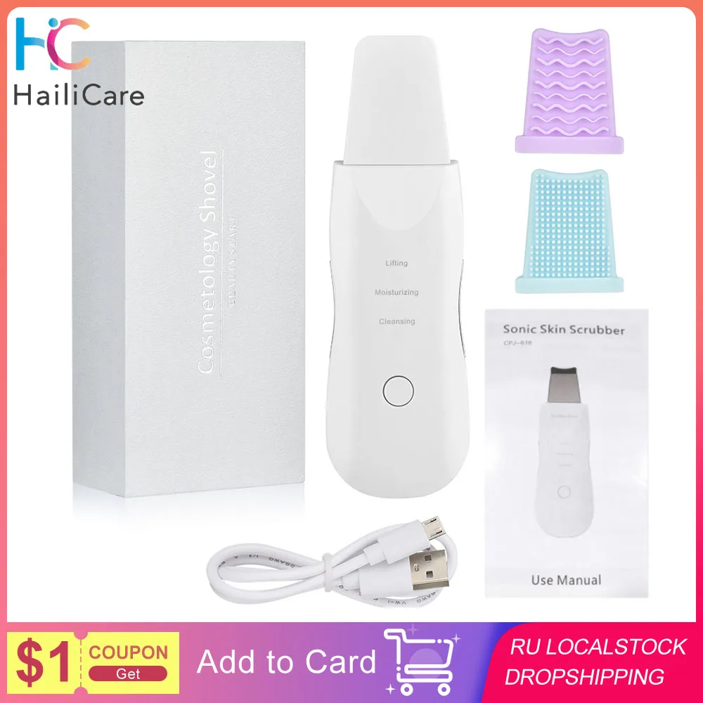 Скребок для кожи для удаления черных точек, ионная вибрация, шпатель для отшелушивания и пилинга, ультразвуковой инструмент для глубокой очистки пор на лице
