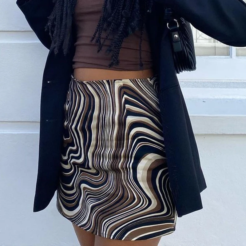 Y2K мини юбки женский Harajuku летняя одежда волна Геометрическая Юбка коричневая юбка Сексуальная короткая юбка милые юбки-карандаш в винтажном стиле, сапоги в панковском стиле,