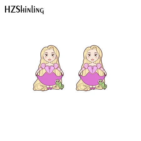 Акриловые серьги-гвоздики с мультяшным рисунком принцессы Рапунцель...