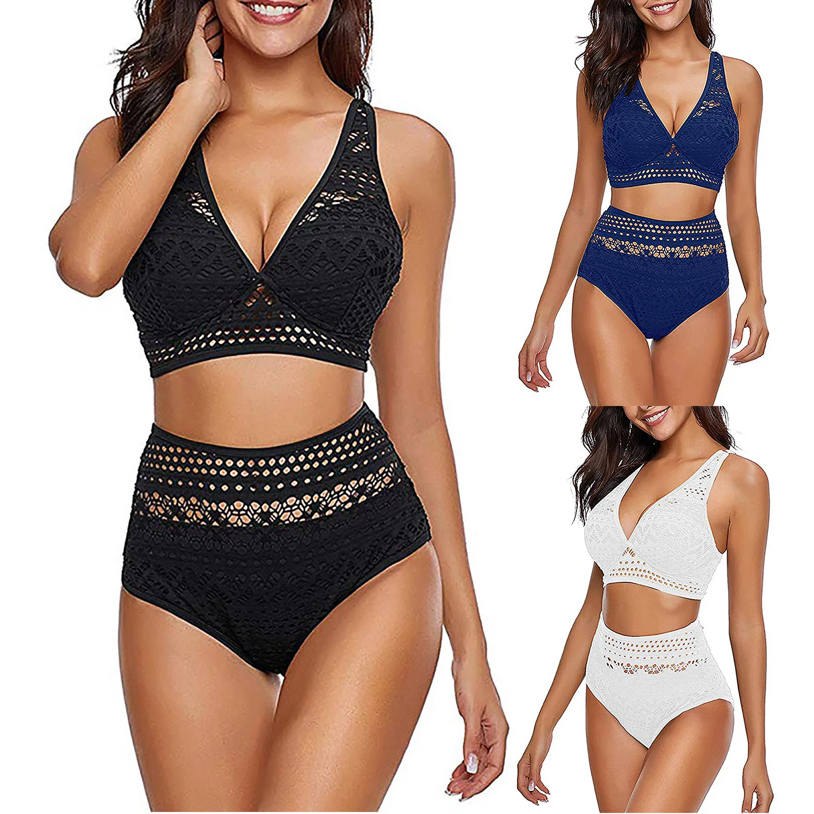 Сексуальный летний раздельный купальник с высокой талией, женский купальник, черное кружевное бикини, женский купальник, монокини, купальные костюмы, пляжная одежда