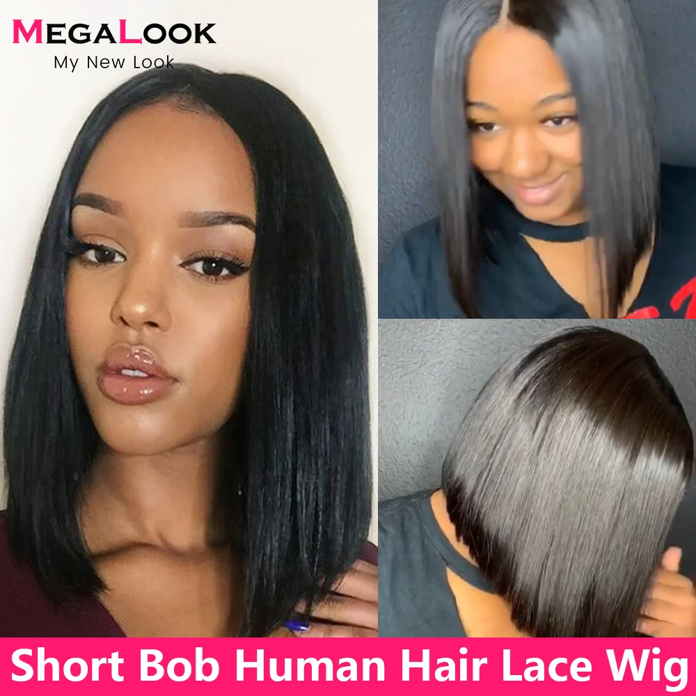 Прямые парики боб на сетке спереди, предварительно выщипанные Детские волосы, бразильские натуральные человеческие волосы, парики для женщин, Короткие парики боб