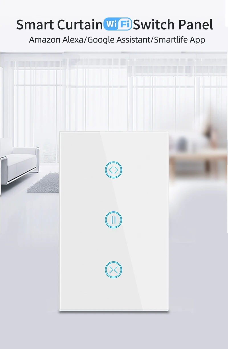 Стеклянная панель EVEO стандарта США, переключатель для штор Smart Life с голосовым управлением