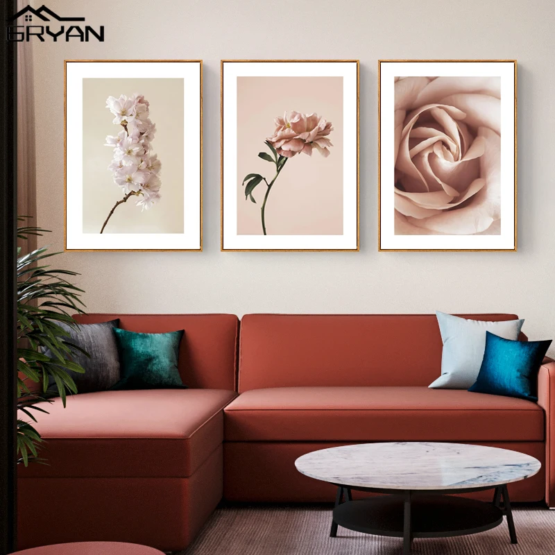 Картина на холсте с розовыми цветами, Настенная картина, модный пос...