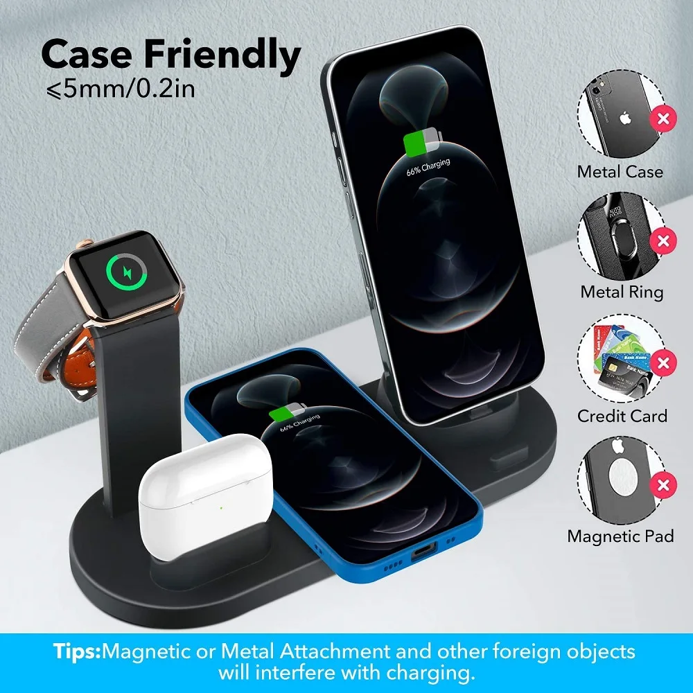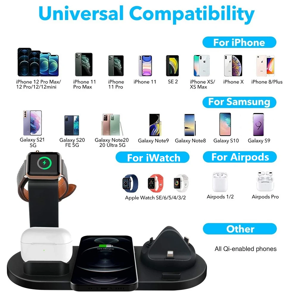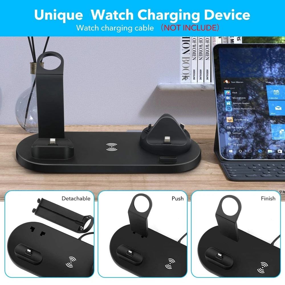 Беспроводное зарядное устройство Qi 4 в 1, док-станция для iPhone 12 11 XS XR X 8 Plus Airpods Pro Apple Watch SE 6 5 4 3 2, быстрая зарядная станция