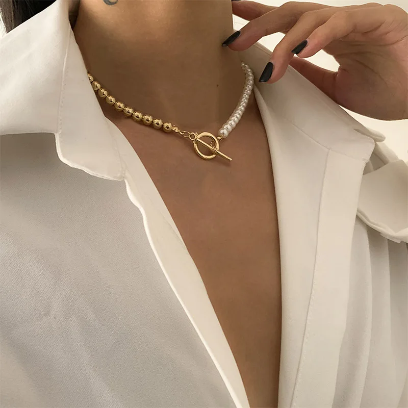 Женское Ожерелье с жемчужинами, колье-чокер в стиле барокко с жемчужинами, колье-чокер в стиле панк с переключателем и застежкой, ювелирное изделие, 2021