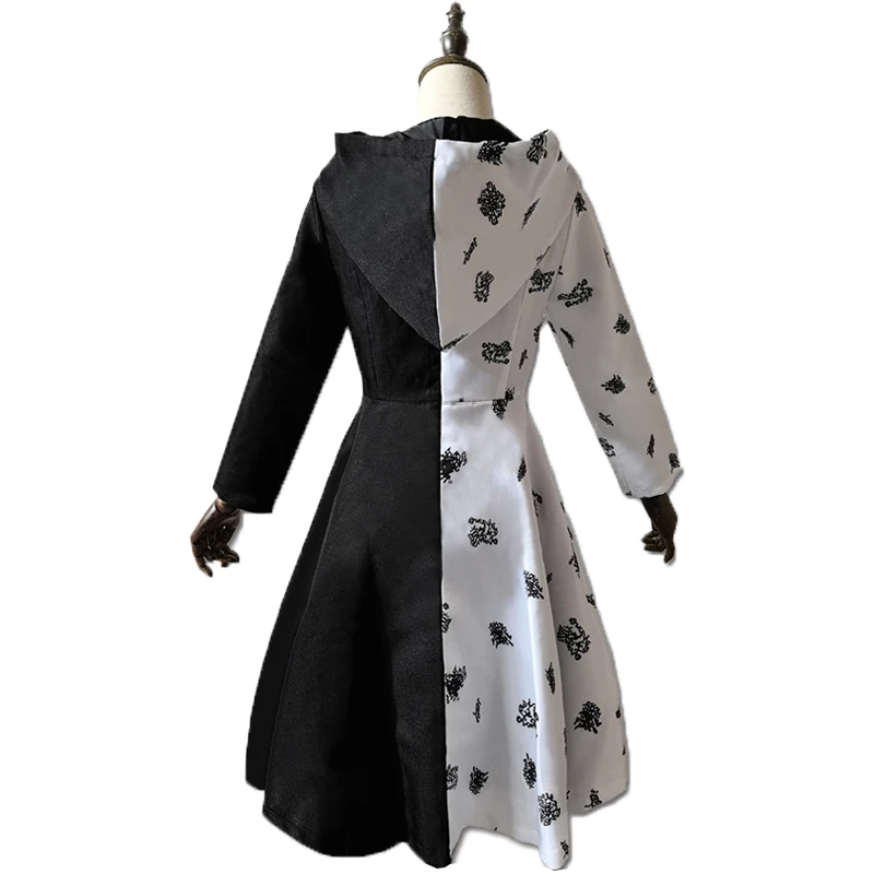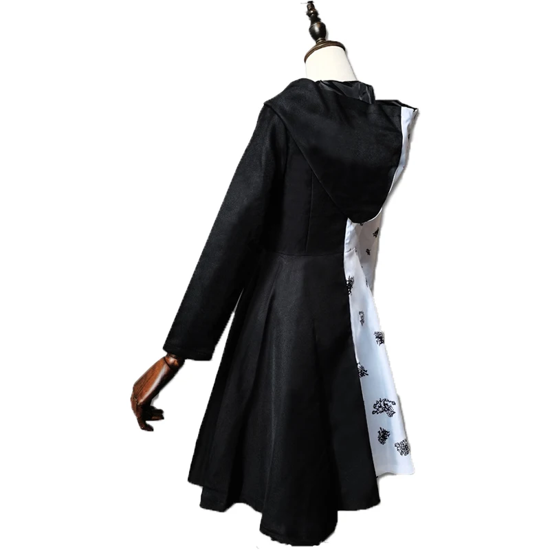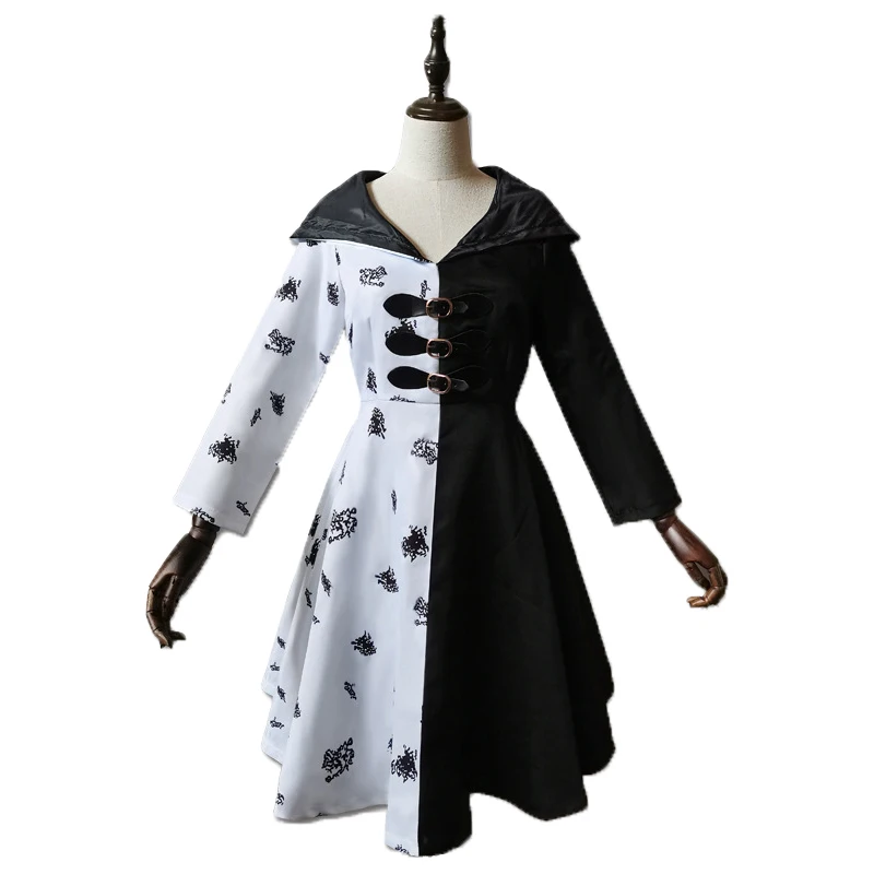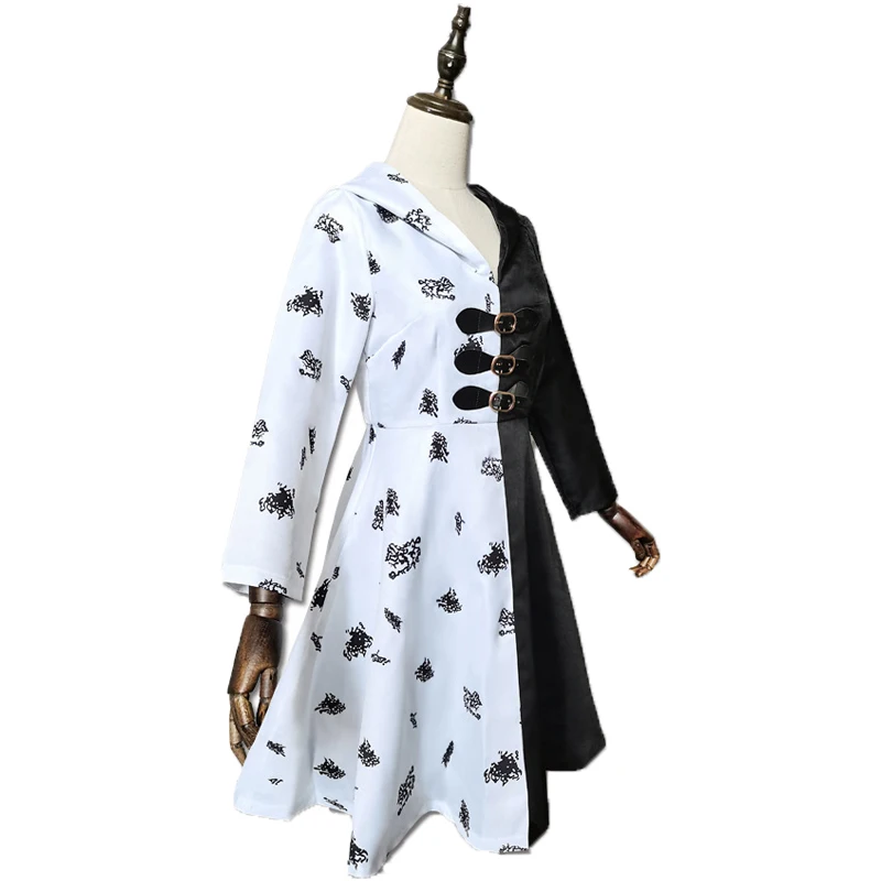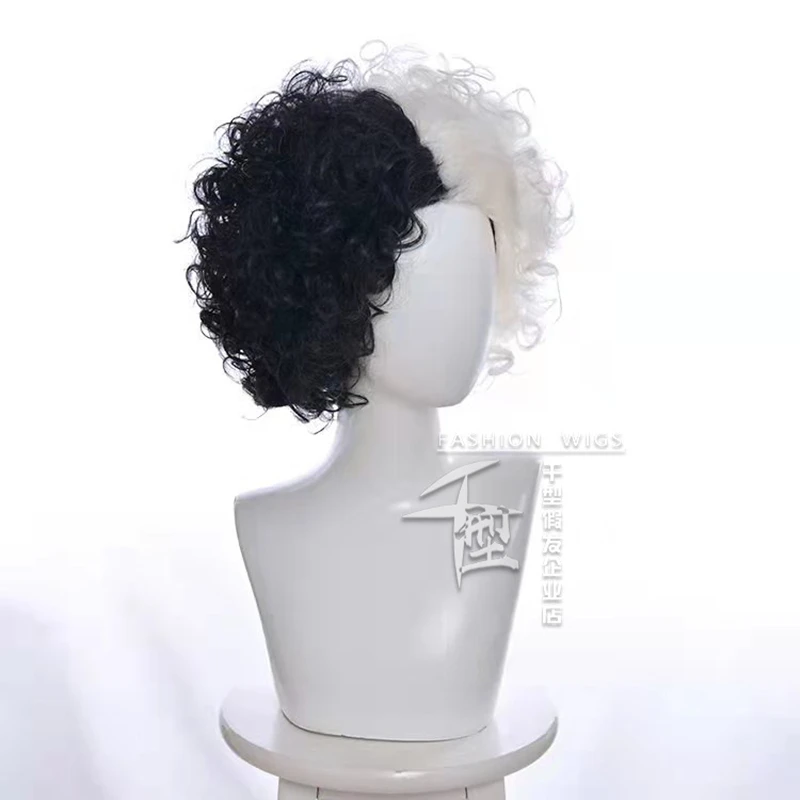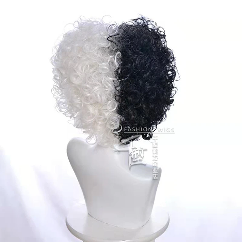 Женский парик, полный комплект, реквизит для косплея, Круэлла де Виль, персонаж Суперзлодея, Униформа костюм для Хэллоуина