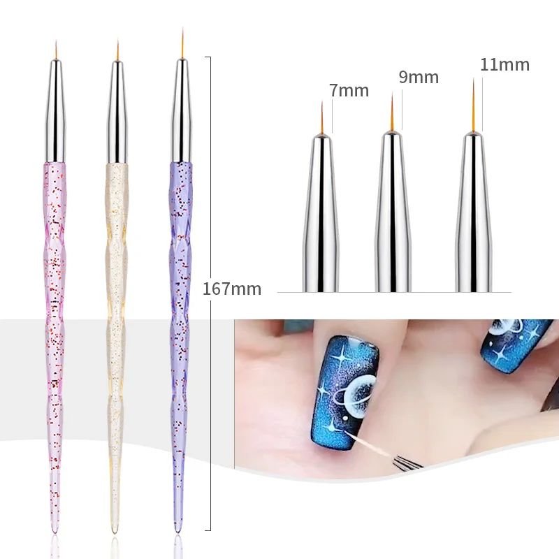 УФ-гель для дизайна ногтей кисти для наращивания Нейл-лайнер детали Рисование рисунок цветок ручка для хрустальной ручки Маникюрный Инструмент 3 шт.компл.