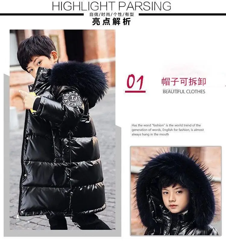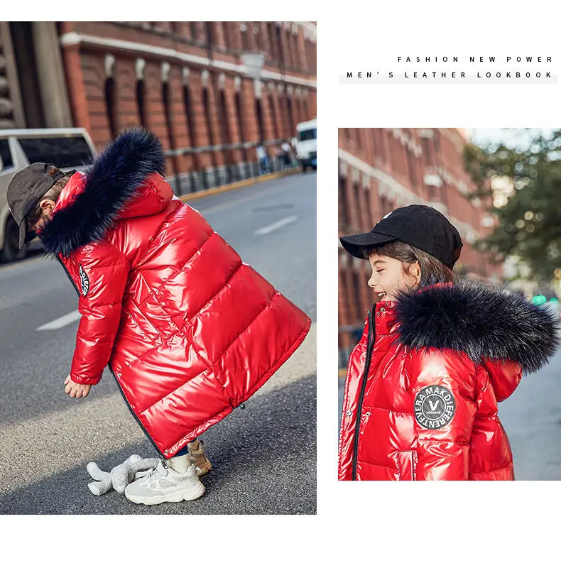 Куртка-парка для мальчиков и девочек, длинная, с искусственным мехом