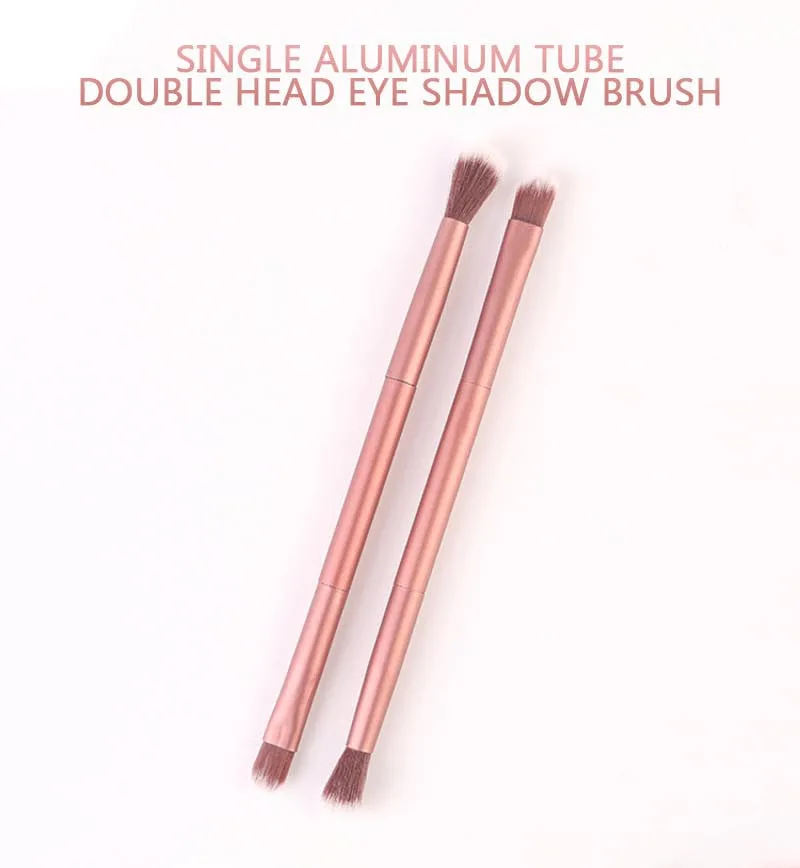 Одного цвета розового золота с двойной головкой макияж кисти нос тени кисточка для нанесения теней для век Кисть для нанесения румян глаз палец инструменты для макияжа; Красота Косметика