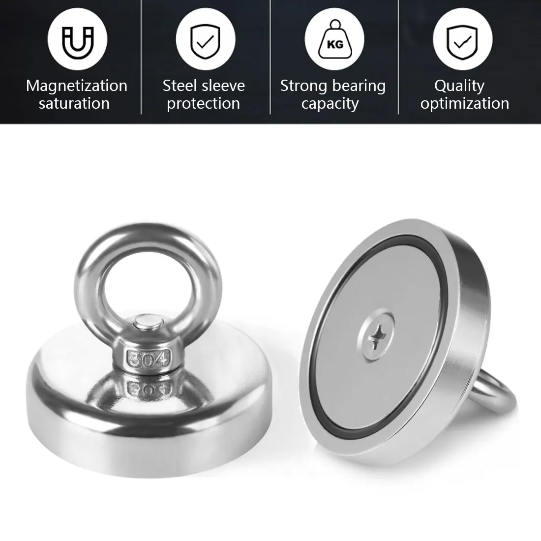 Сильный Неодимовый спасательный магнит, рыболовные магниты с кольцом из нержавеющей стали, магнитный держатель для крючка