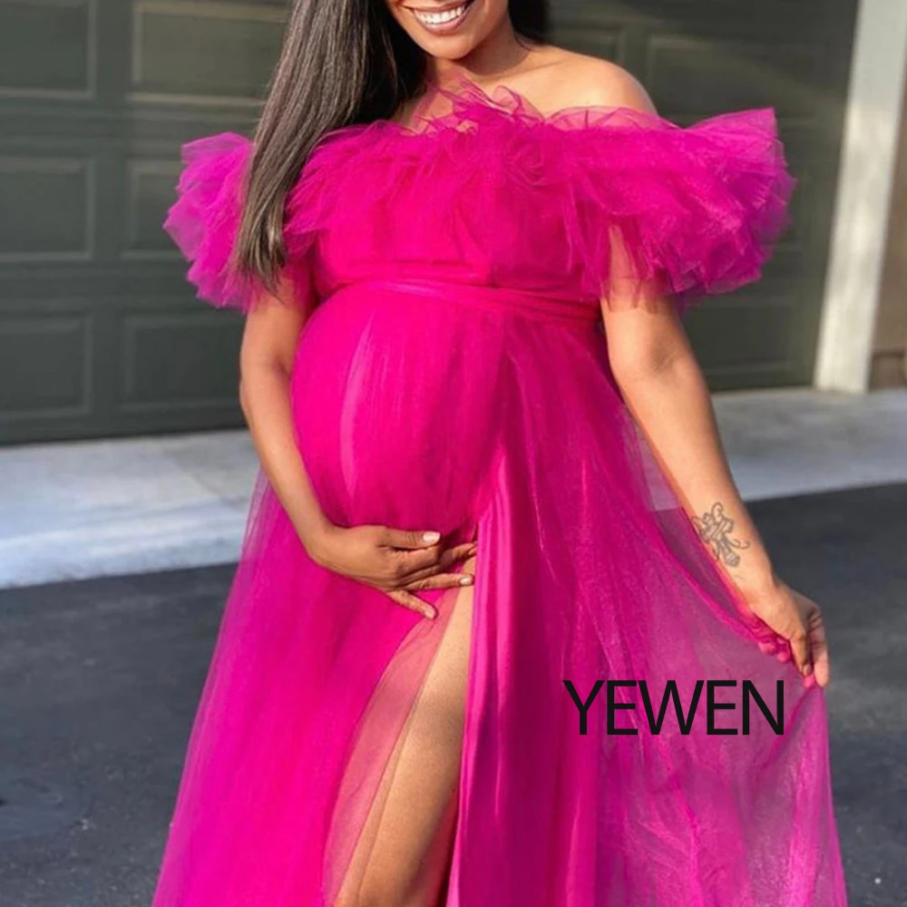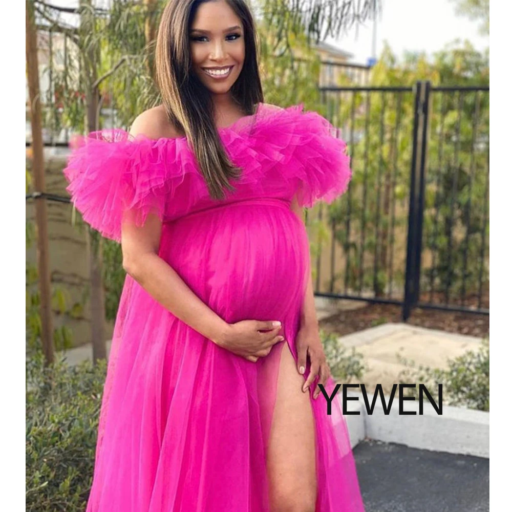Платье для беременных с открытыми плечами длинное женское фатиновое...