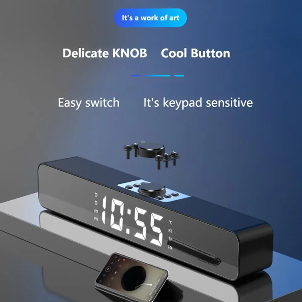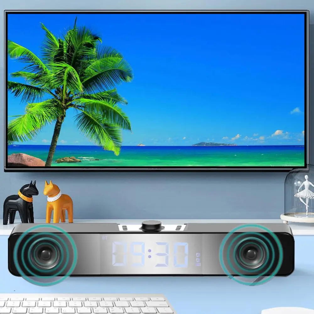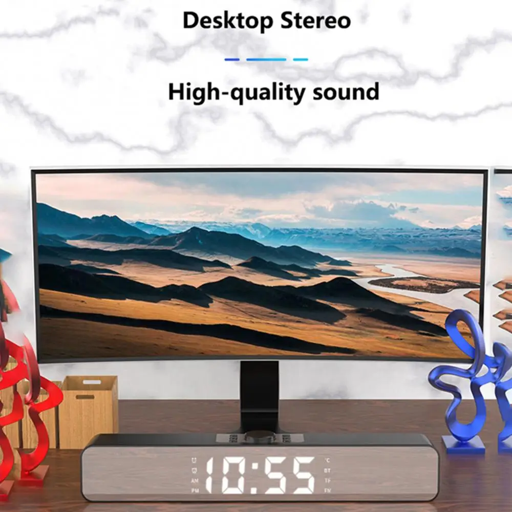Беспроводной Bluetooth 5.0 динамик перезаряжаемый светодиодный Саундбар будильник TF USB AUX портативный громкий динамик музыкальный плеер настольные часы