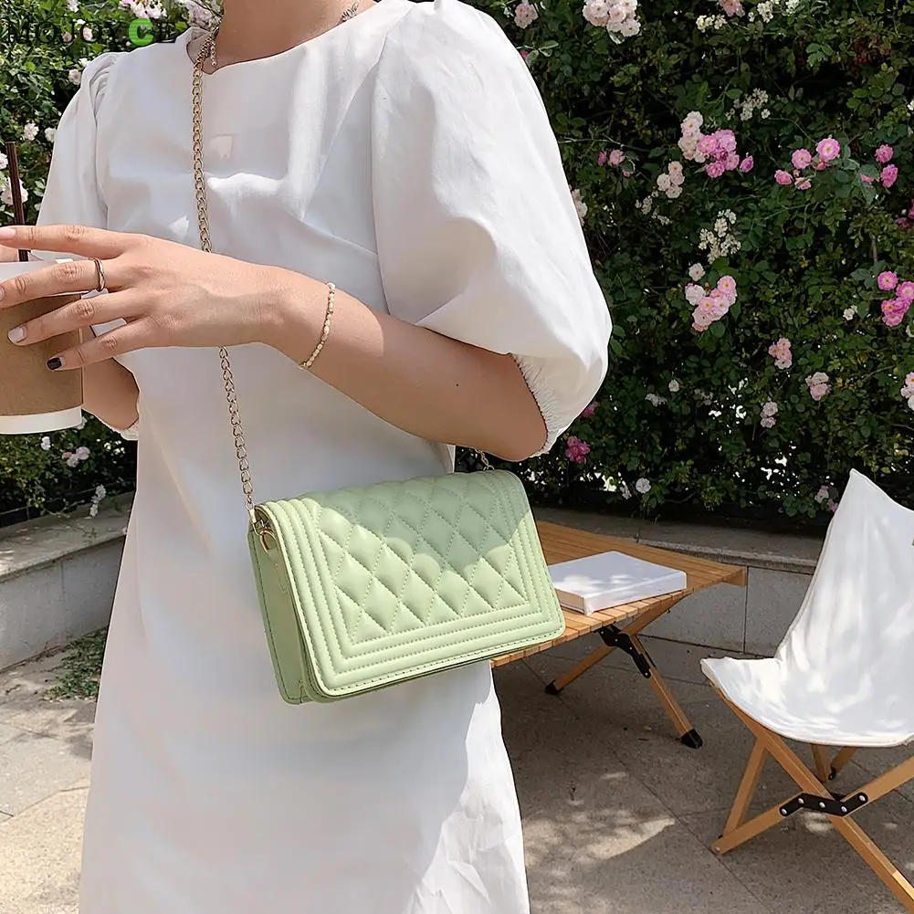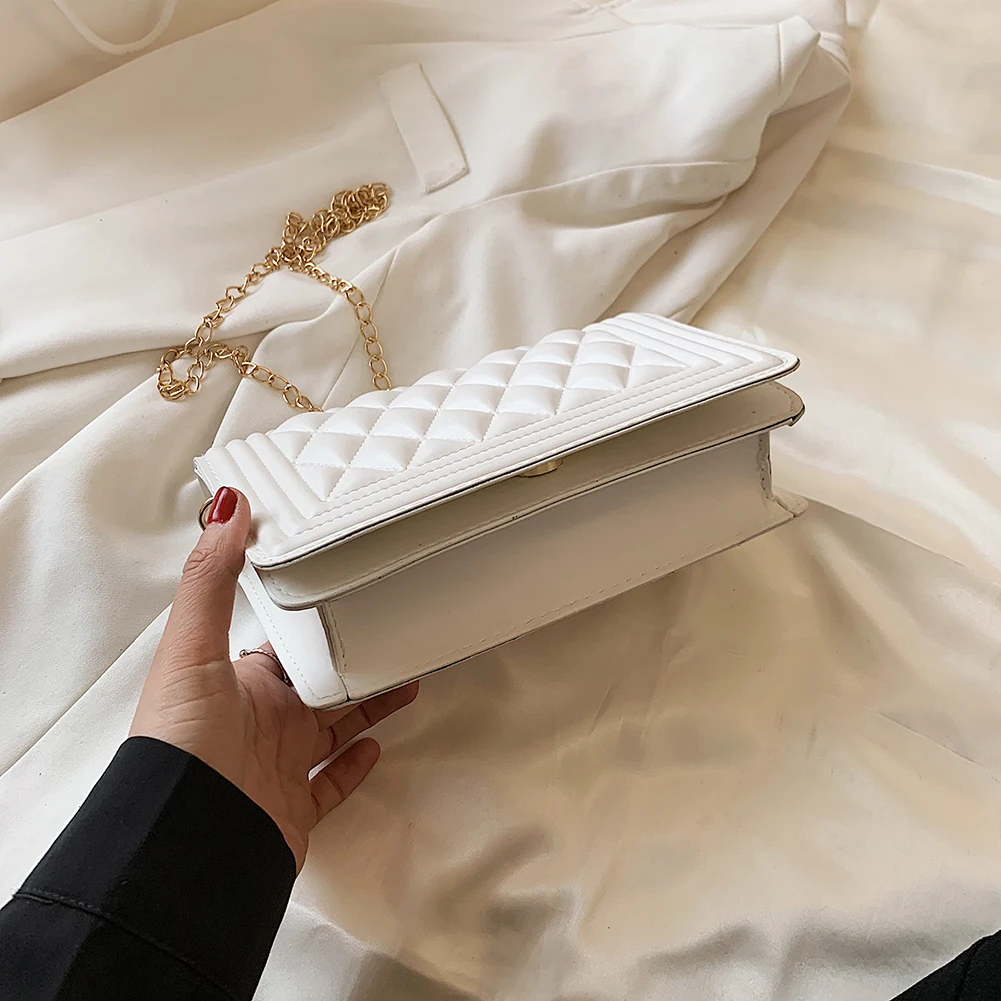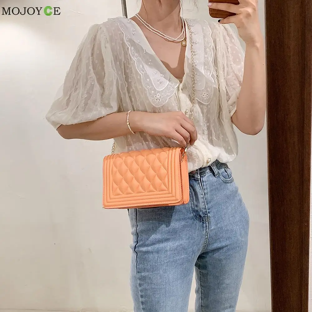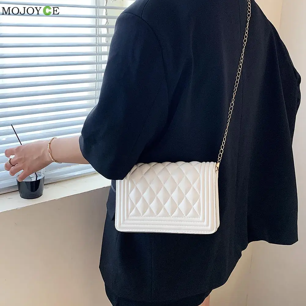 Модная женская сумка-мессенджер из искусственной кожи с узором в клетку, однотонная сумка через плечо, повседневная женская сумка на цепочке, маленькая сумочка с клапаном