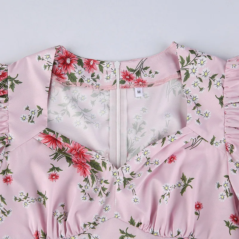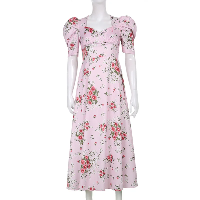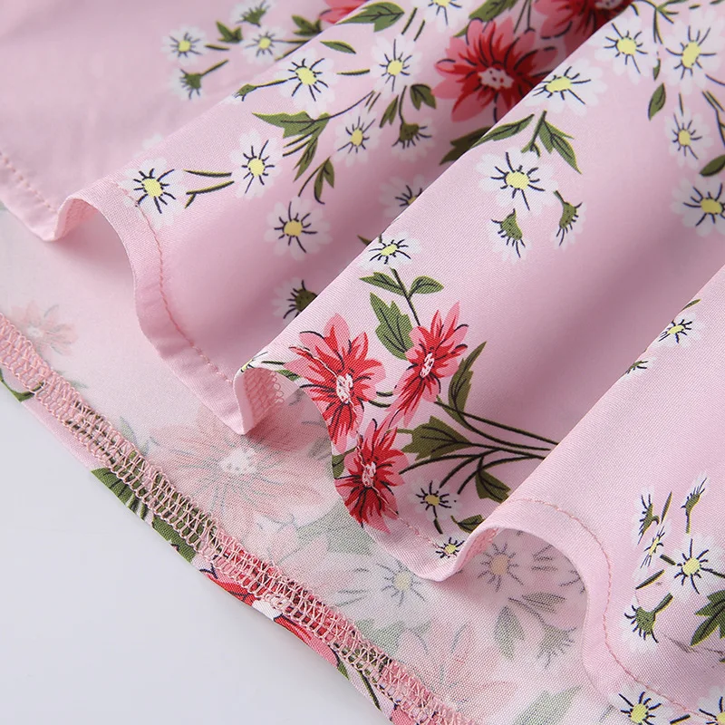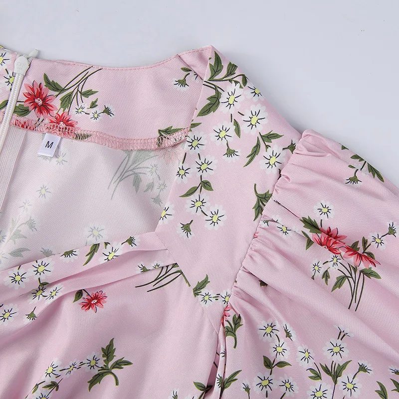 Женское винтажное платье с цветочным принтом, розовое платье с квад...