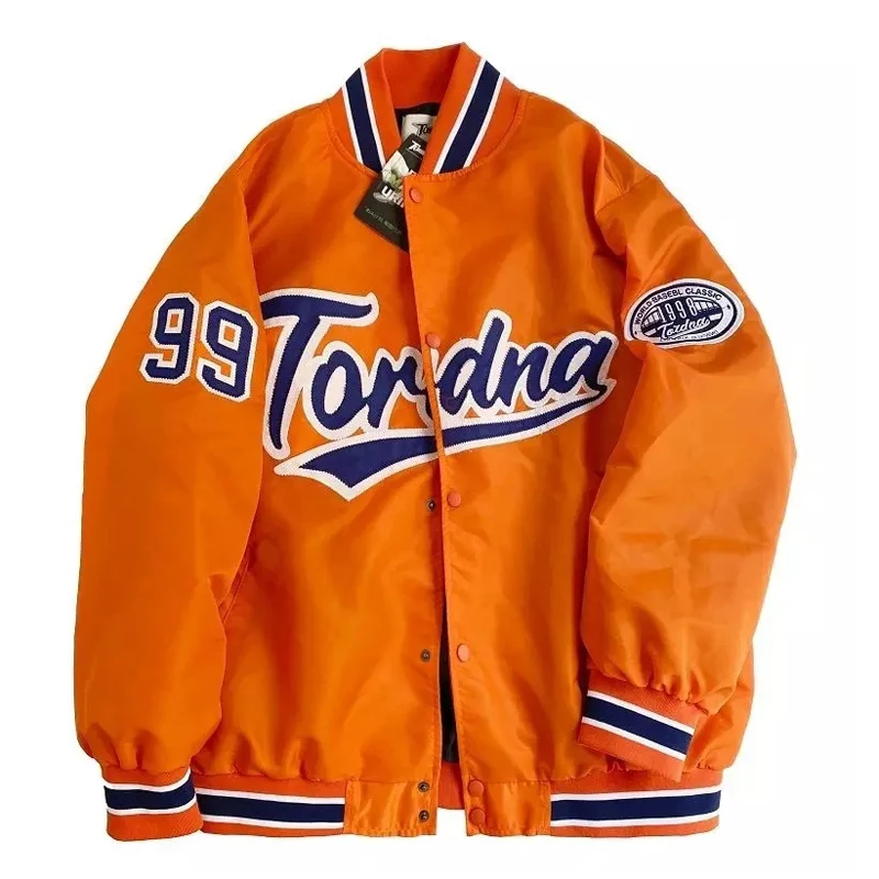 Винтажная Оранжевая Куртка-бомбер с вышивкой, осень 2021, бейсбольн...