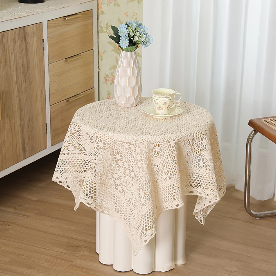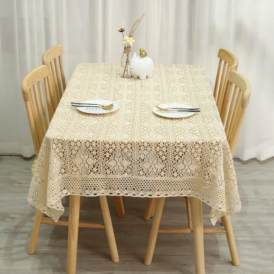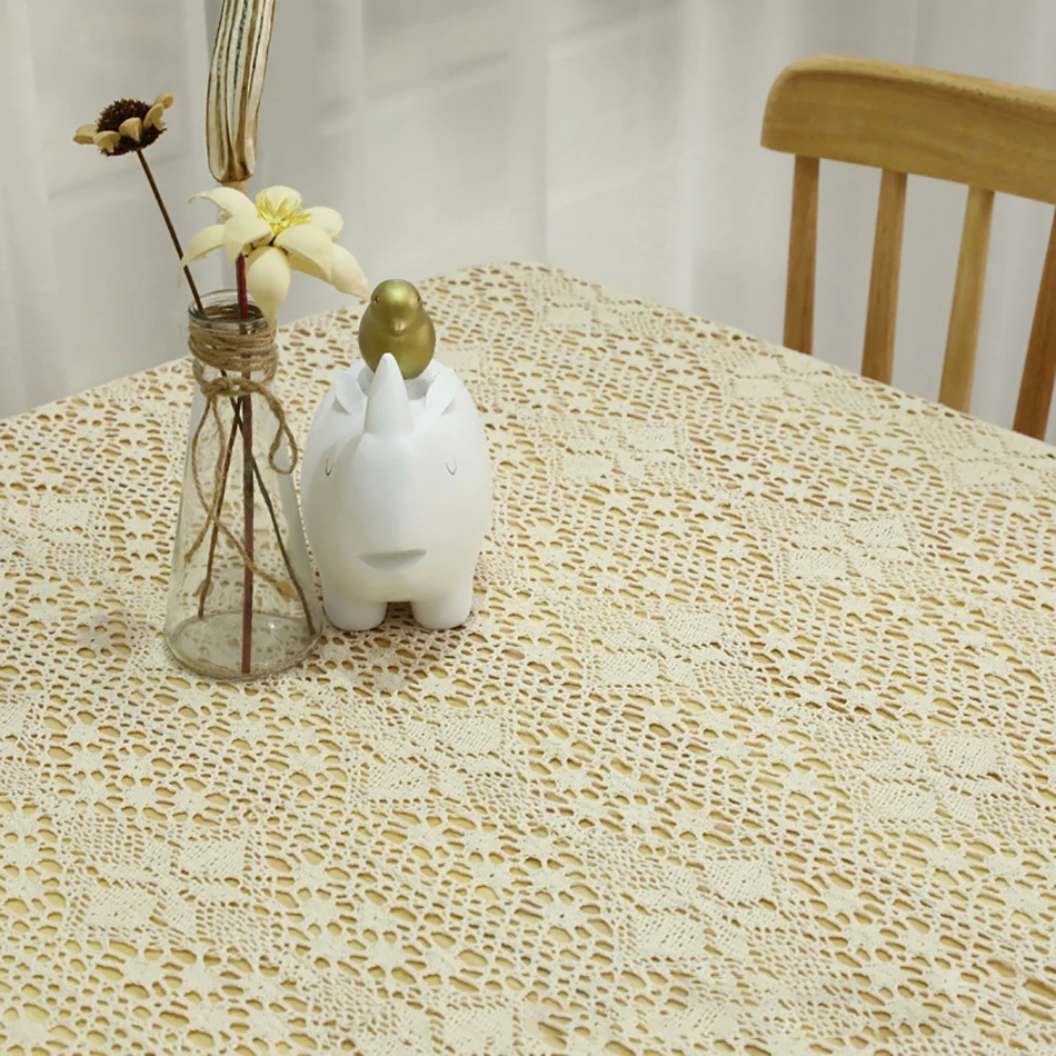 Вязаная крючком скатерть, бежевая хлопковая ткань, прямоугольная скатерть для стола, гостиной, домашний декоративный чехол, тканевый коврик