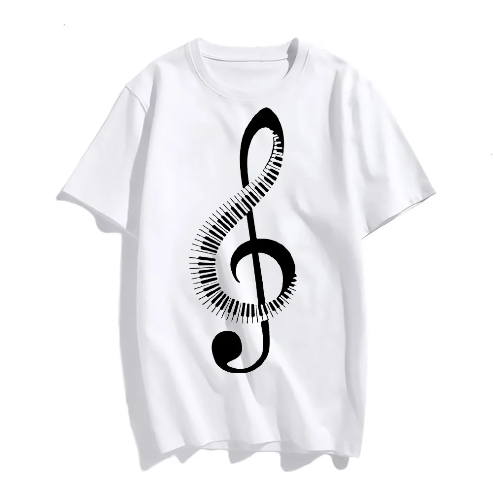 Женская футболка с принтом музыкальных нот, Повседневная модная футболка в Корейском стиле Харадзюку с коротким рукавом и графическим принтом, лето 2021