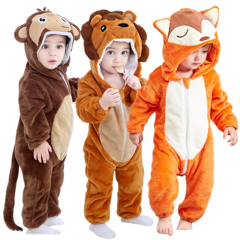 Детский комбинезон с животными, лисалевТигр с капюшоном, Детский комбинезон для косплея, зимняя теплая Пижама