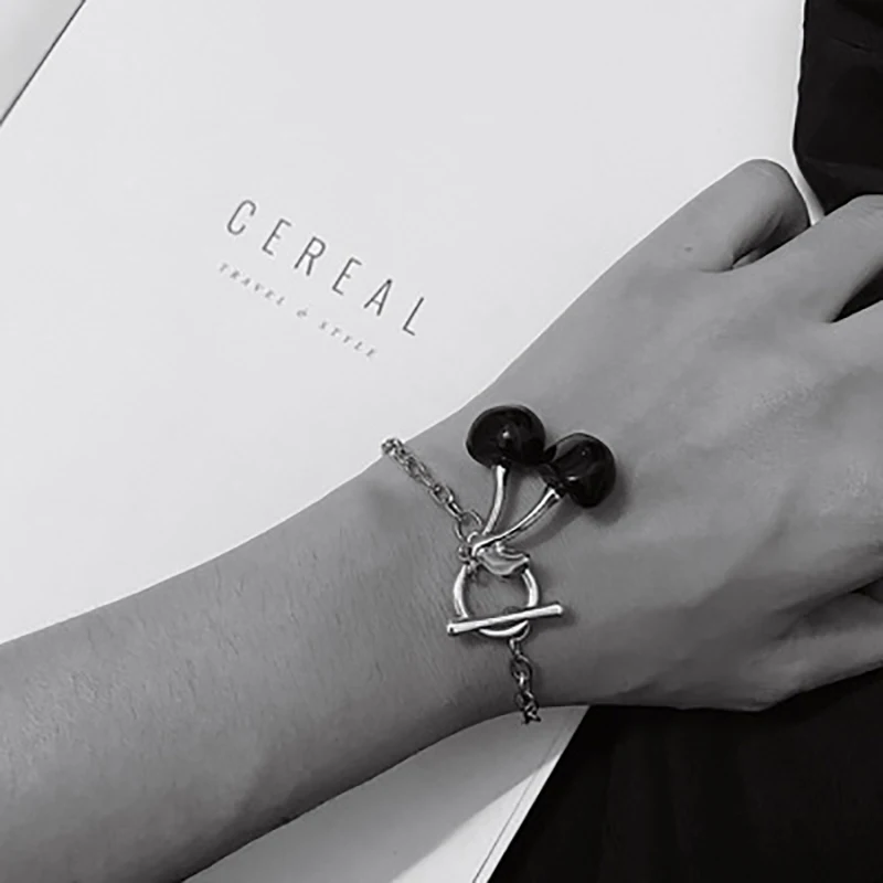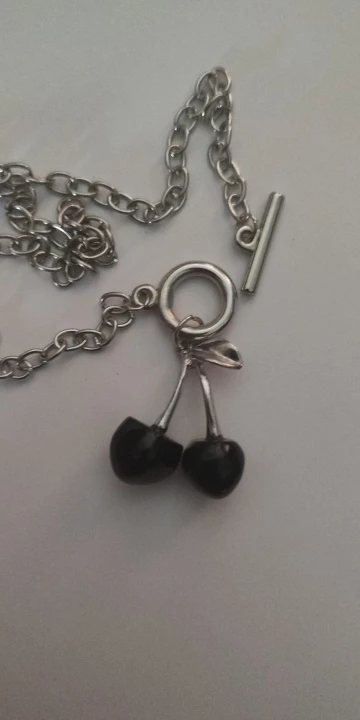 Цепочка с подвеской в виде черной вишни, металлическая, серебристая