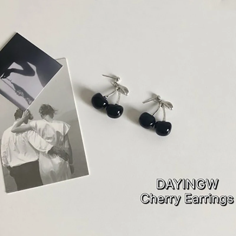 Элегантный черный милый ожерелье с подвеской в виде вишни комплект короткий чокер Посеребренная цепочка модная изящная подвеска в виде фруктов женское украшение на шею