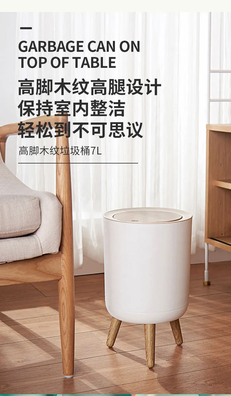 Бытовой креативный с крышкой, пресс для гостиной, туалета, ванной, кухни, в скандинавском стиле, ins, корзина для мусора с имитацией под дерево