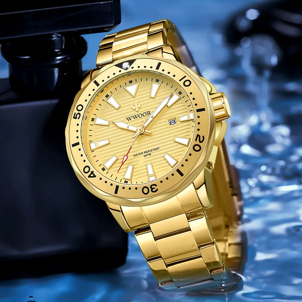 2021 WWOOR модные мужские часы, лучший бренд, Роскошные наручные часы, кварцевые часы, устойчивые к ударам, водолаз, спортивные мужские часы