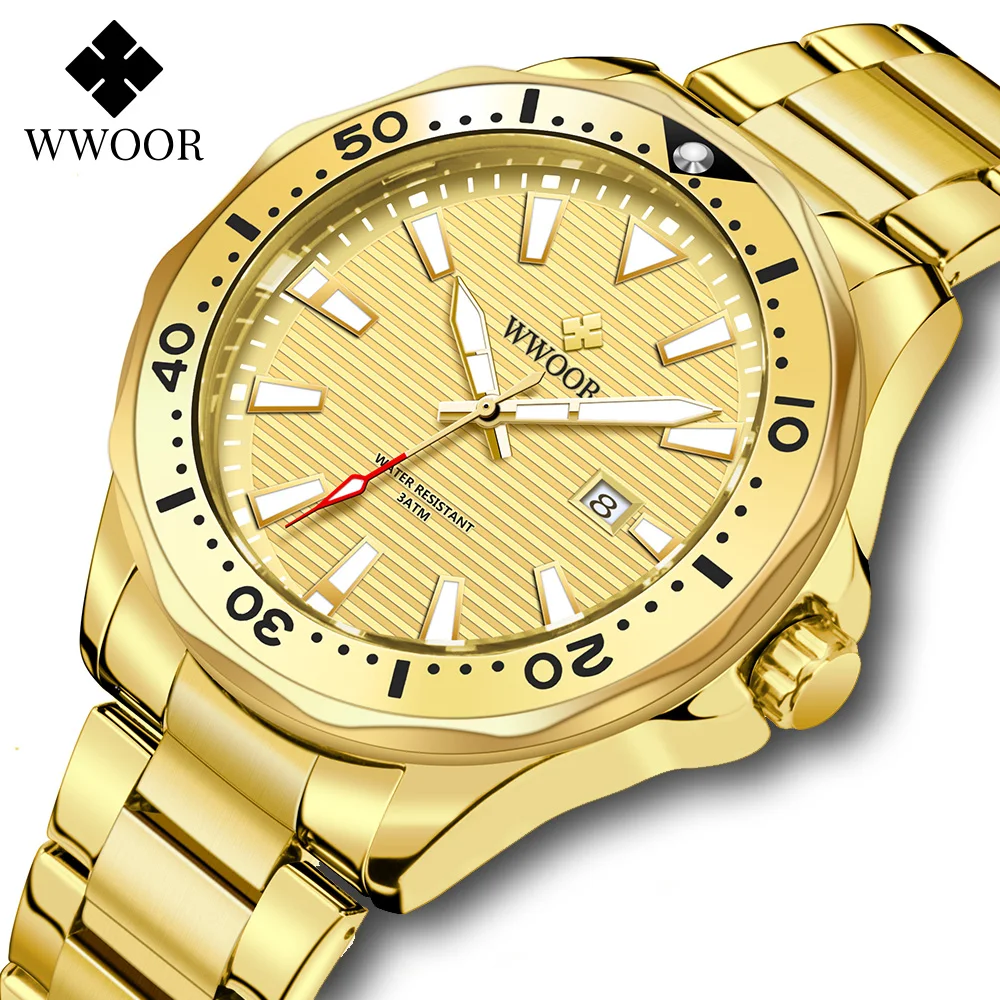 Мужские часы WWOOR 2021, новые, Роскошные, модные, из нержавеющей стали, мужские спортивные, кварцевые, светящиеся, водонепроницаемые, военные наручные часы