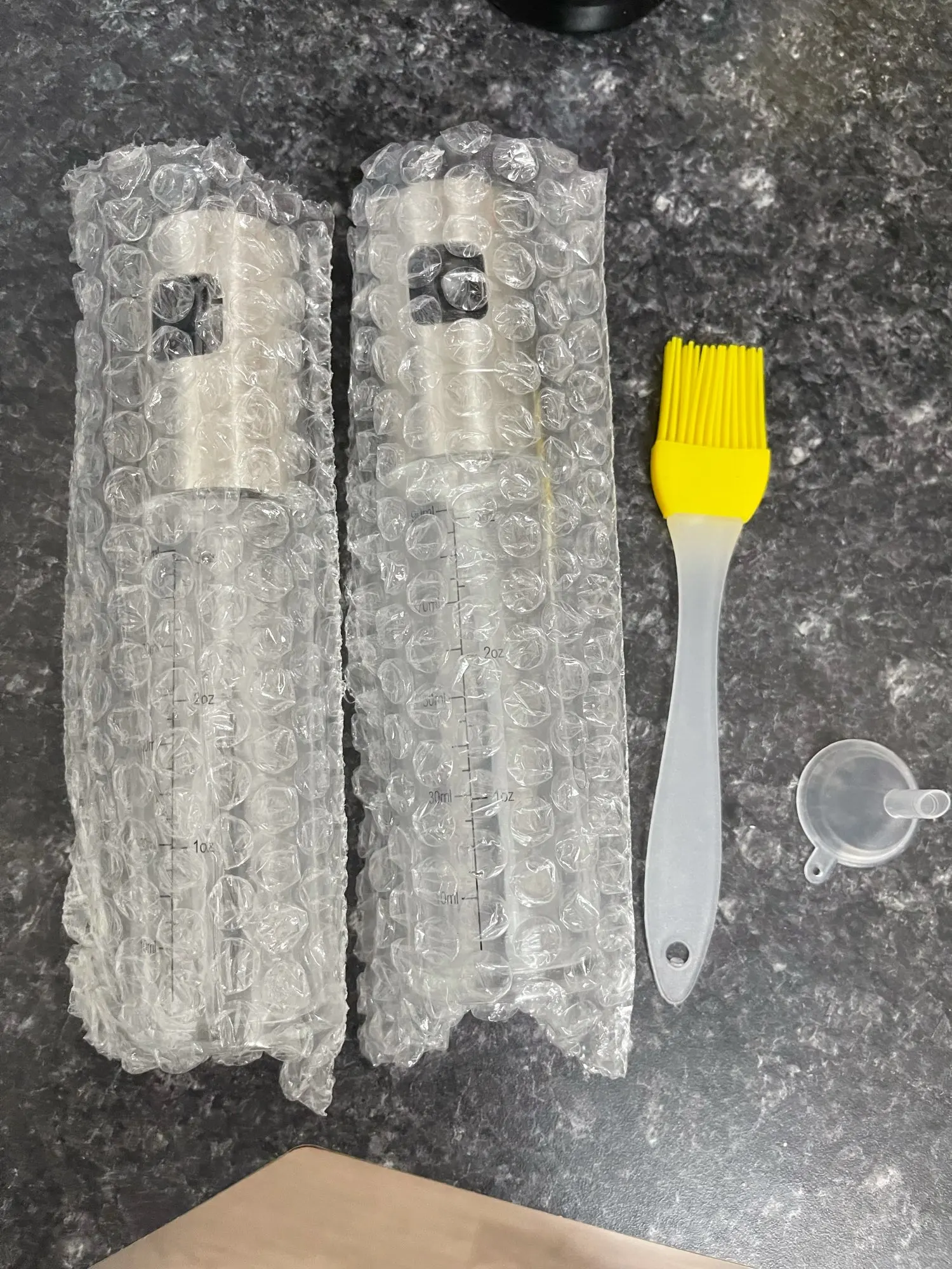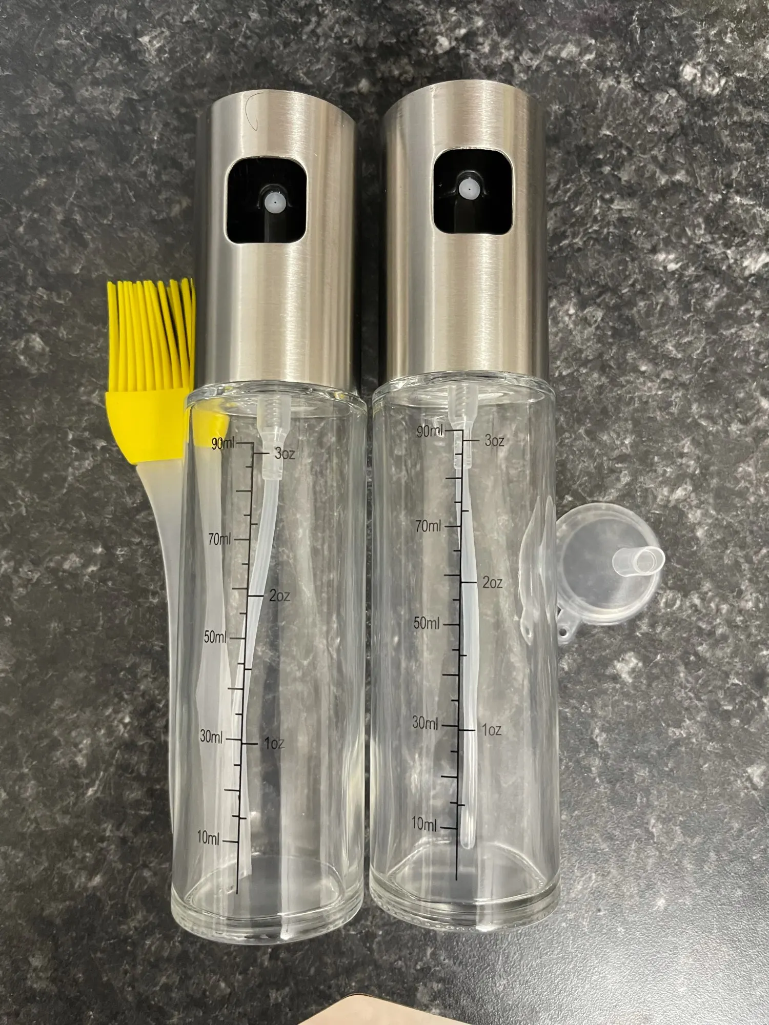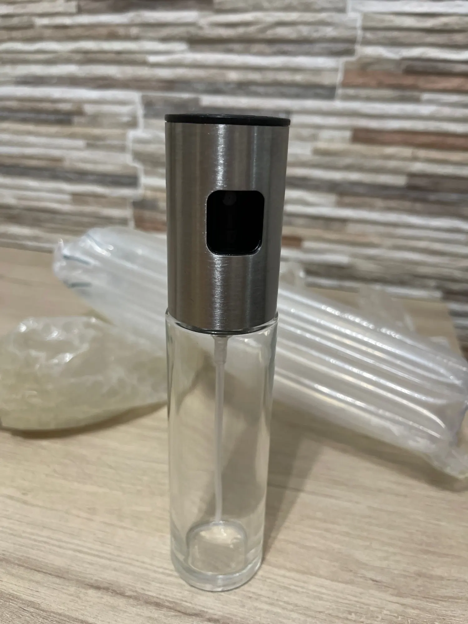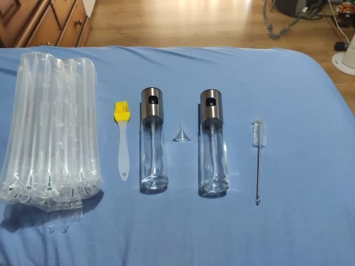 Взех си два броя. Едното не му работи помпичката. Изобщо не изпръсква. В другото сложих слънчогледово олио. Излиза тънка струя. Не разпръсква дифузно, както на снимките. Преди малко пак пробвах, но този път по рязко натисках и до някъде се получи. Предполагам е така, защото олиото е гъсто. Не съм пробвал с оцет, но със сигурност с него ще стане дифузно, защото пробвах с вода и става идеално.