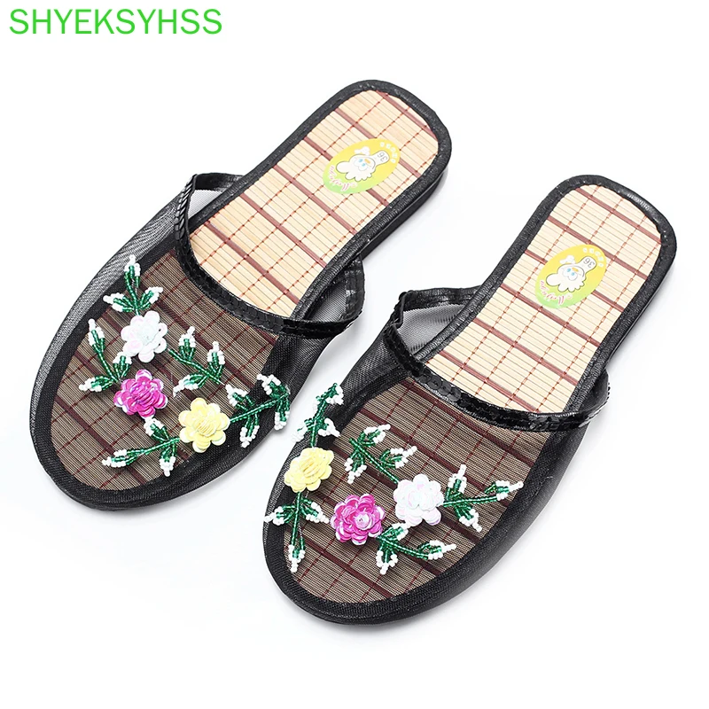 Сланцы женские сетчатые, шлепанцы с цветочным принтом, плоская подошва, повседневная домашняя обувь, лето 2021