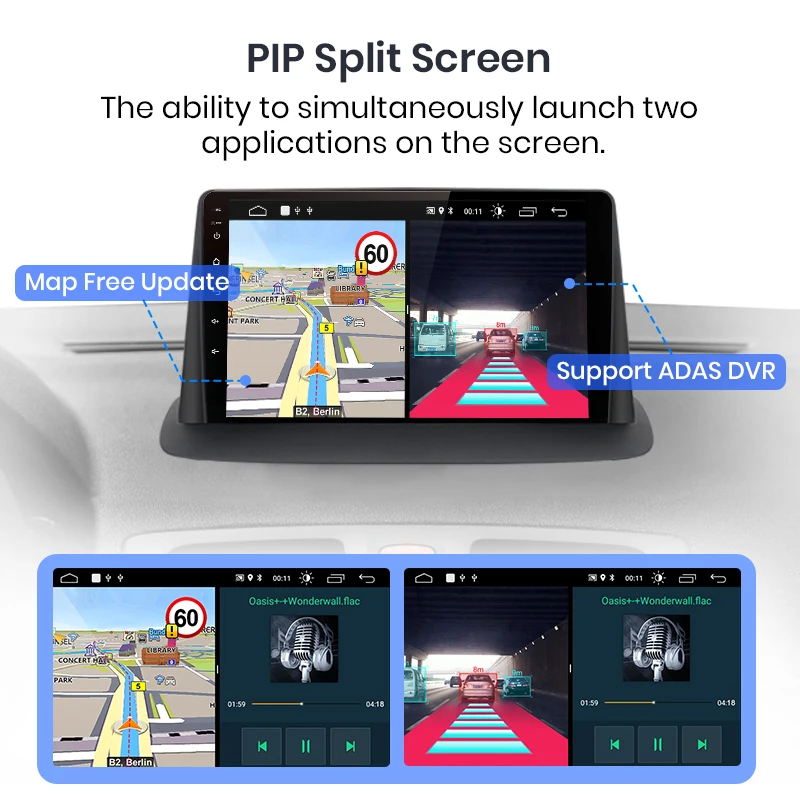 Вы можете использовать навигацию и другие приложения одновременно, такие как прослушивание музыки или включение функций ADAS и т. Д.
