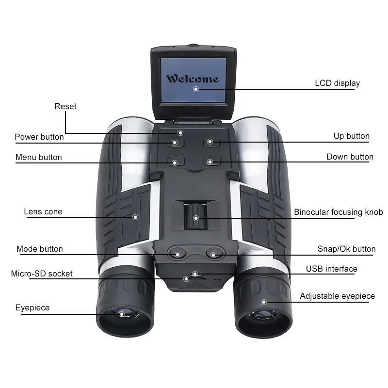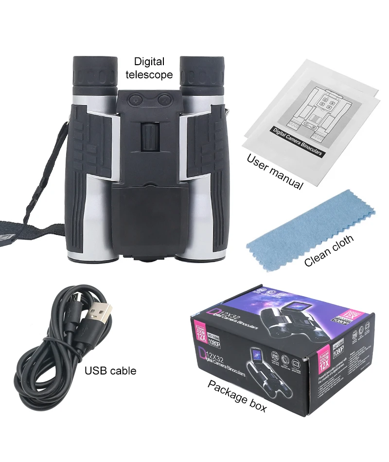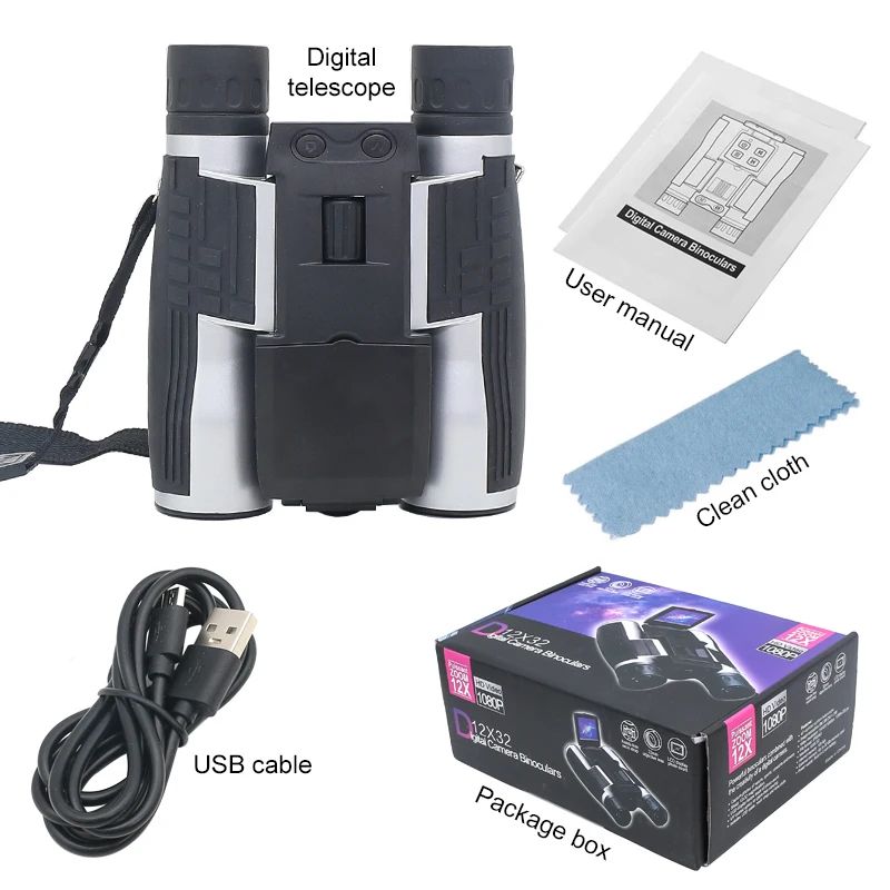 Цифровой телескоп 12x32, бинокулярный телескоп с ЖК-экраном 2,0 дюйма, уличный бинокль для фото-и видеозаписи