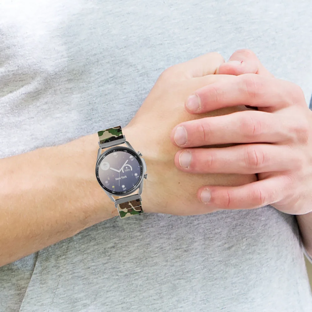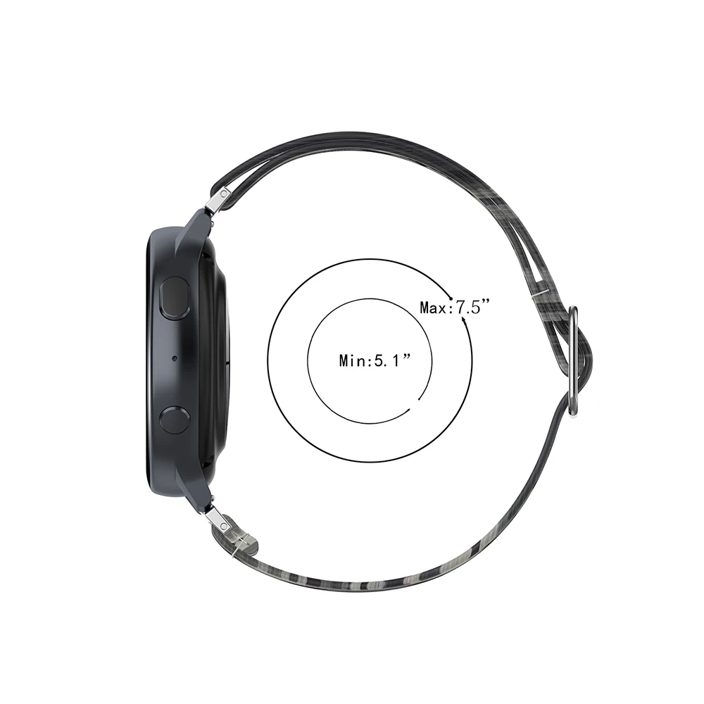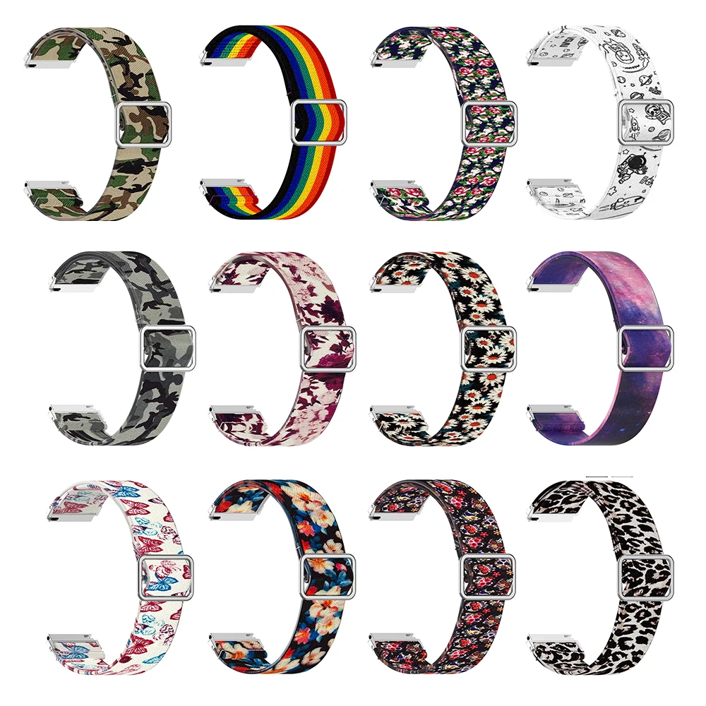 1. Материал: мягкая ткань и нейлоновый материал с металлической пряжкой, мягкая и удобная в носке2. Ширина ремешка: 20 мм Быстрый выпуск3. Эластичный ремешок, подходит для wirst 5,1 "-7,5"4. Цвет: 12 цветов с принтом, яркий и яркий, не выцветает5. Упаковочный лист: ремешок для часов 1*20 мм (с быстроразъемными контактами)