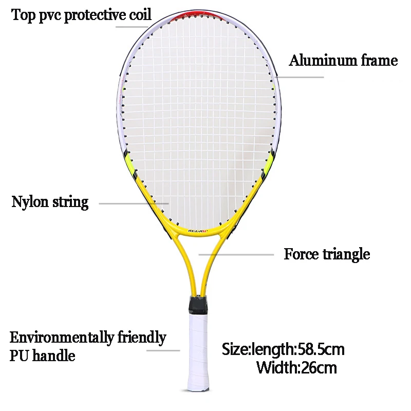 Название: 23 дюймовая детская прочная теннисная ракеткаМатериал: алюминиевый сплавВес: 300 гРазмер: 23 дюйма, длина: 58,5 см ширина: 28 смКостюм для детей/подростковПримечание: товар не подходит для игры в теннис!Особенности:1. Теннисная ракетка с использованием высококачественного и прочного нейлонового материала и экологически чистой PU ручкой, она прочная иНе повреждает руки детей.2. Из-за ручного измерения возможна погрешность в 1-3 см.