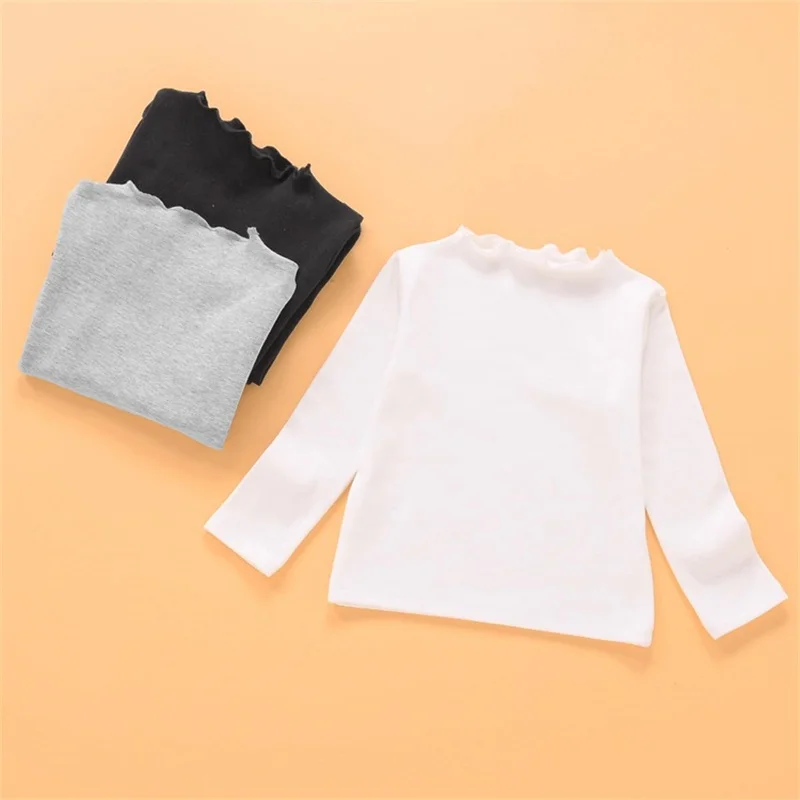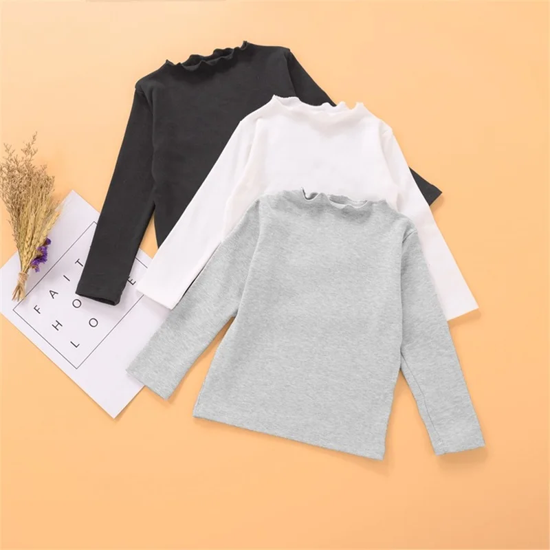 Детская однотонная Цвет, блуза с длинными рукавами; Сезон осень костюм для девочек, комплект из платья с круглым вырезом; Повседневные универсальные блузки WT593