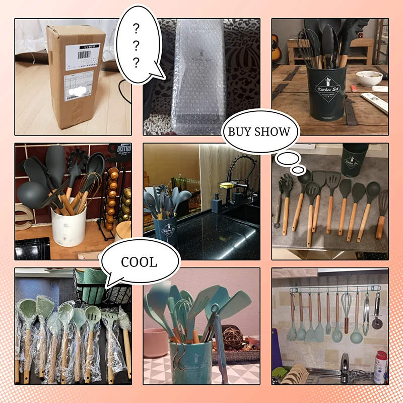 12 шт. набор силиконовых кухонных принадлежностей антипригарная лопата с деревянной ручкой набор инструментов для приготовления пищи с ящиком для хранения кухонные инструменты