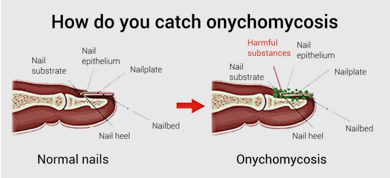 2. Нанесите 3-4 капли ногтя на инфицированные ногти.