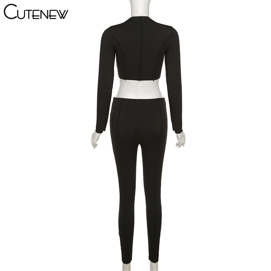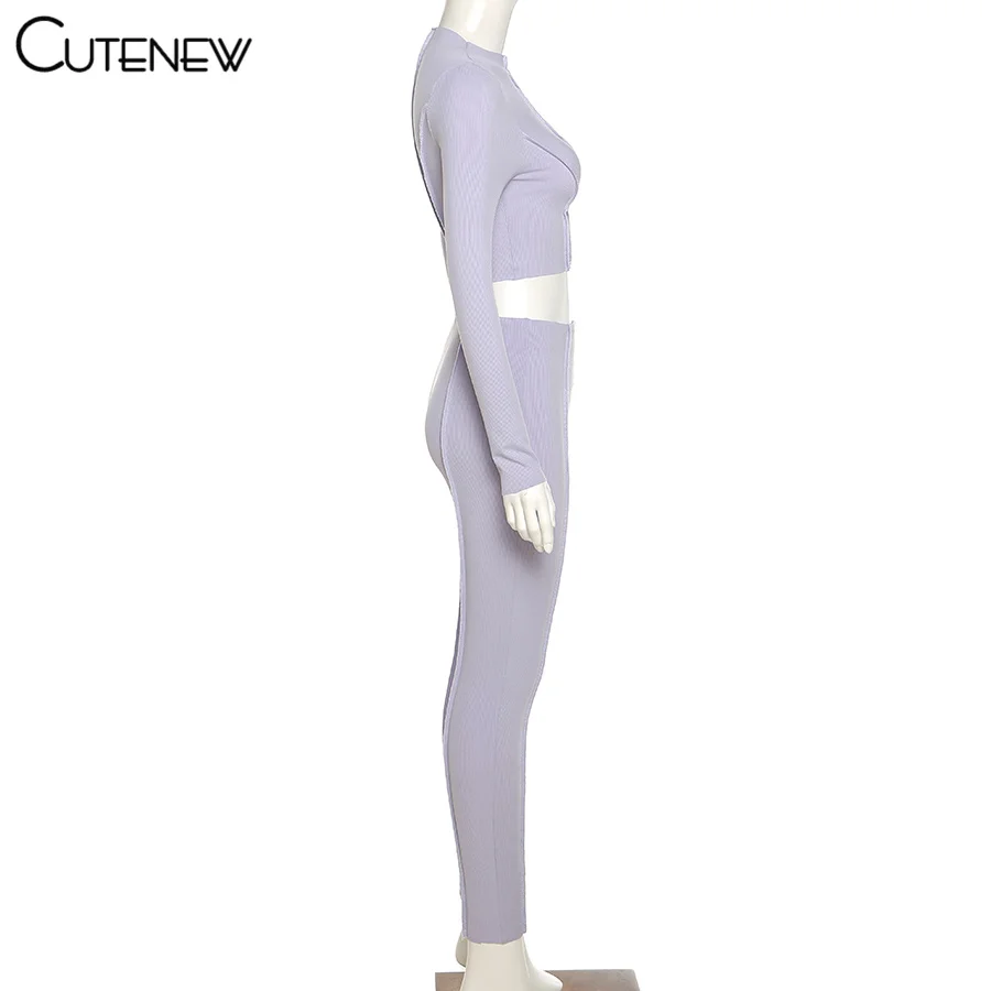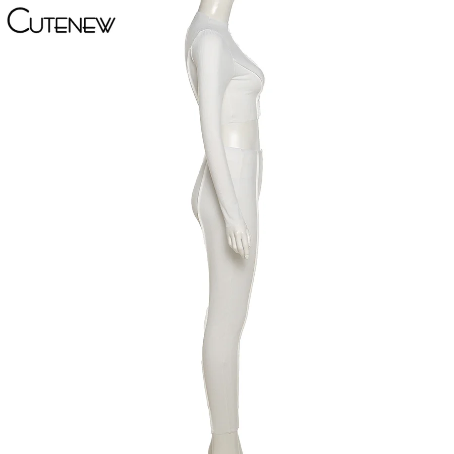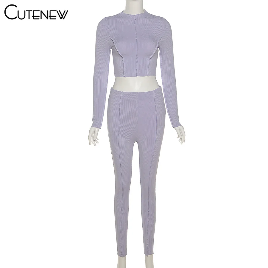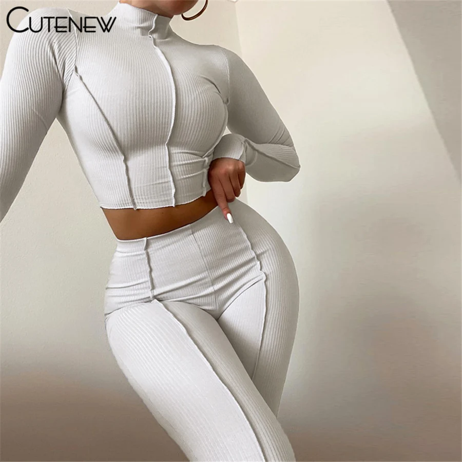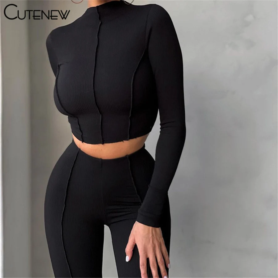 Женский спортивный костюм, однотонный костюм из двух предметов, короткий топ с высоким воротником и длинным рукавом и облегающие леггинсы, осень