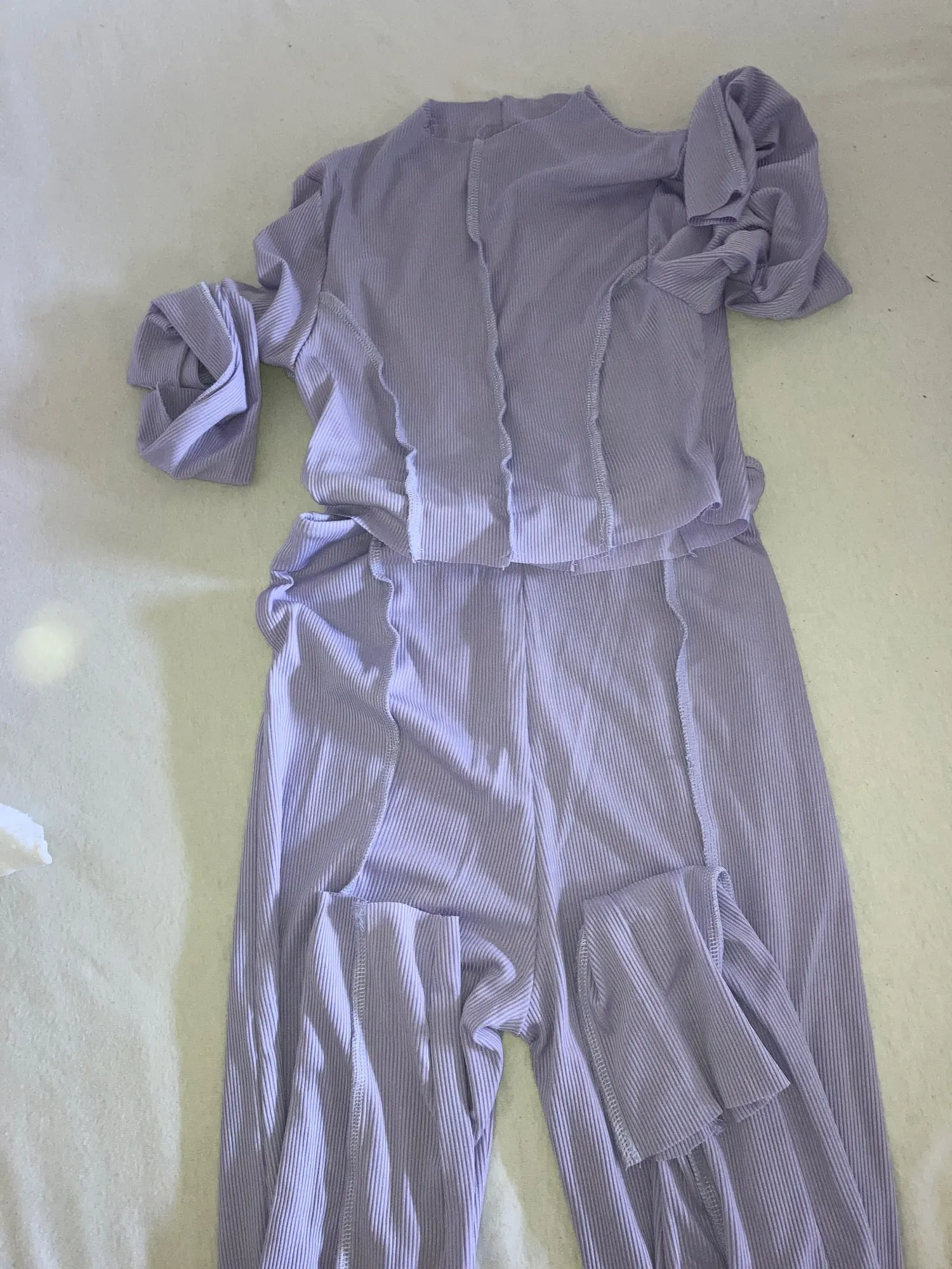 Комплект бомбический! Цвет потрясающе-нежный,лавандовый. На свои параметры 82-65-82 и рост 168 см взяла размер S. Леггинсы сели идеально (даже небольшой запас есть), а вот топ узковат в плечах,от чего кажется на пару размеров меньше нужного. Ткань нежная,к телу приятная. Понравились декоративные наружные швы. комплект для прогулок, нежели для фитнеса. Длина рукавов и брюк мне в самый раз Доставка в Беларусь заняла около месяца.