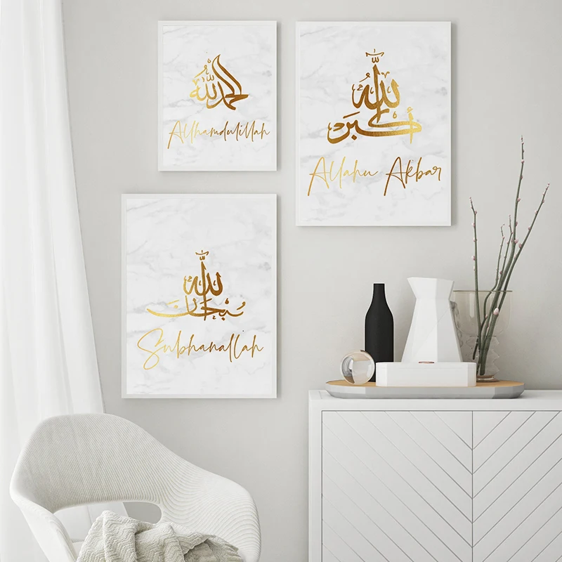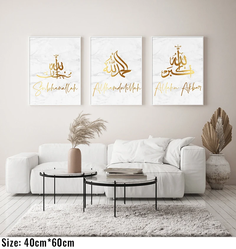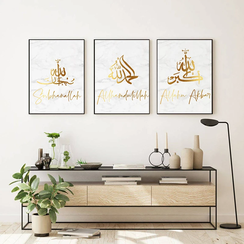 Арабская Исламская каллиграфия золото Аллах акбар Аллах плакат Холст Картина мусульманских Wall Art печатать фотографии Современное украшение для дома