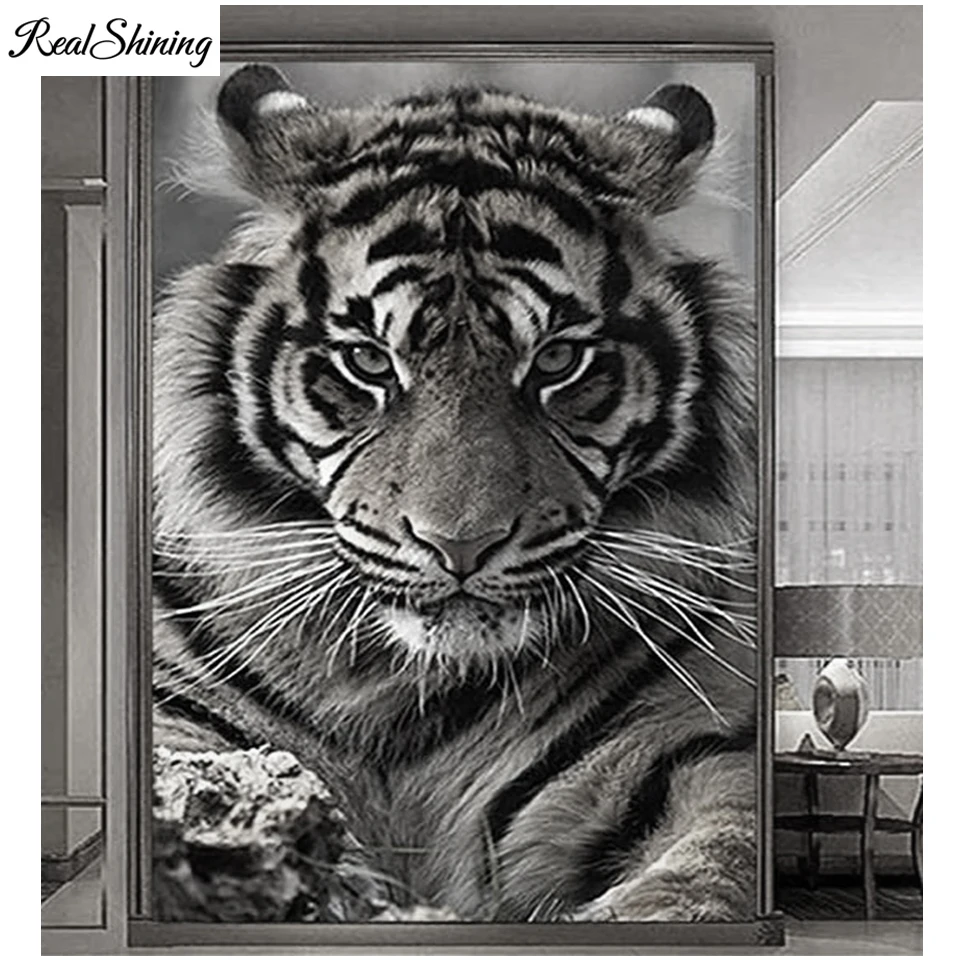 Алмазная мозаика с изображением тигра, животные черного и белого цвета, вышивка в эстетике дикой природы, настенные картины для гостиной, домашний декор, T198