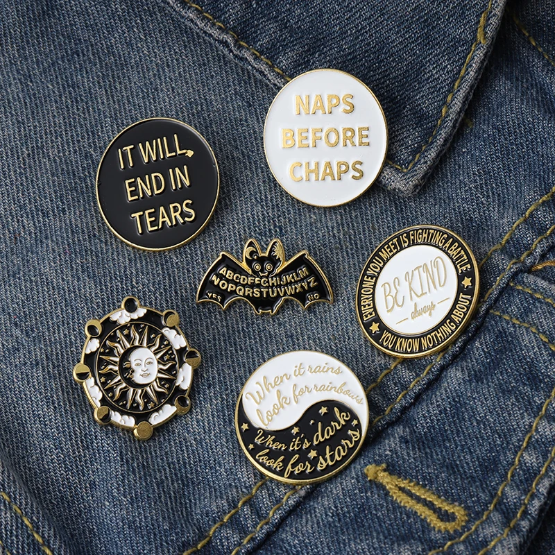 Значки с эмалью в Стиле Инь-Ян, день и ночь, летучая мышь, солнце, ...