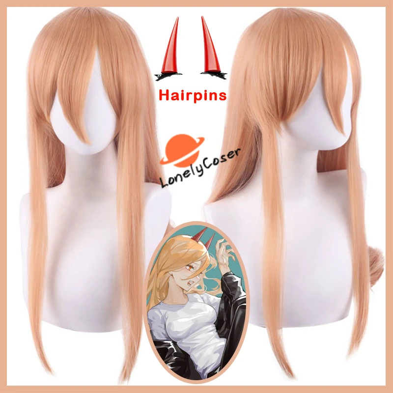 Аниме бензопила человек мощность Косплей Длинные оранжевые волосы шпильки рога реквизит термостойкие волосы волокна + парик шапка Хэллоуин Вечерние