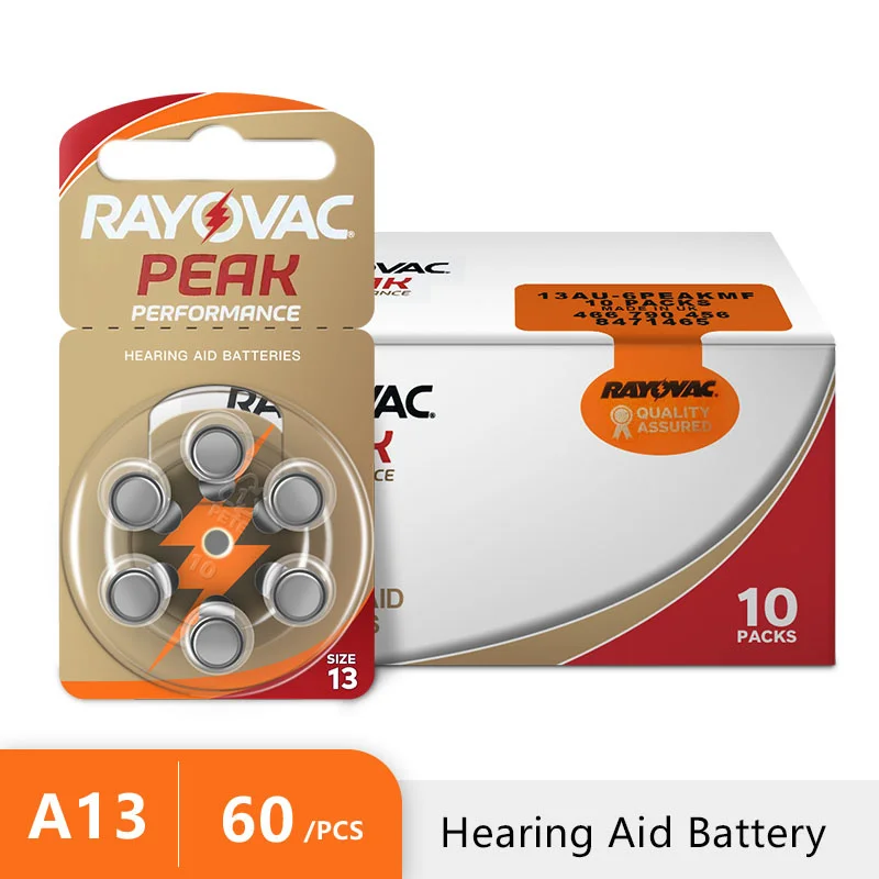 Аккумулятор для слухового аппарата RAYOVAC PEAK, цинковые воздушные батареи 1,45 В. 13A A13 13A 13 P13 PR48, 60 шт., для слухового аппарата