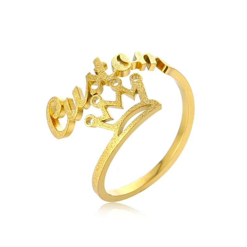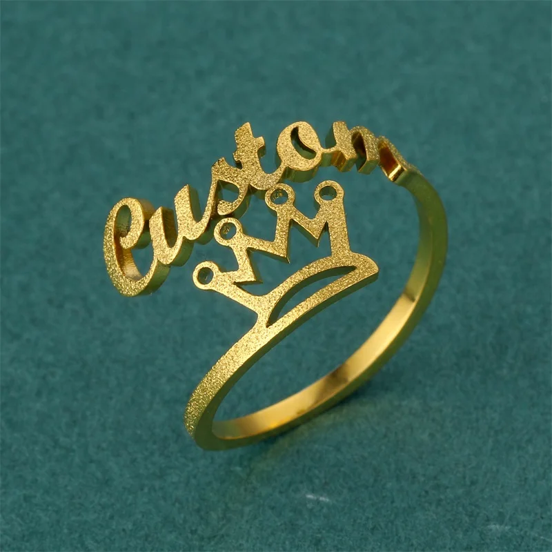 Кольцо из нержавеющей стали под заказ, кольца с именем золотого цвета для женщин, персонализированные кольца с именной табличкой и матовой короной, ювелирные изделия, оптовая продажа, Прямая поставка