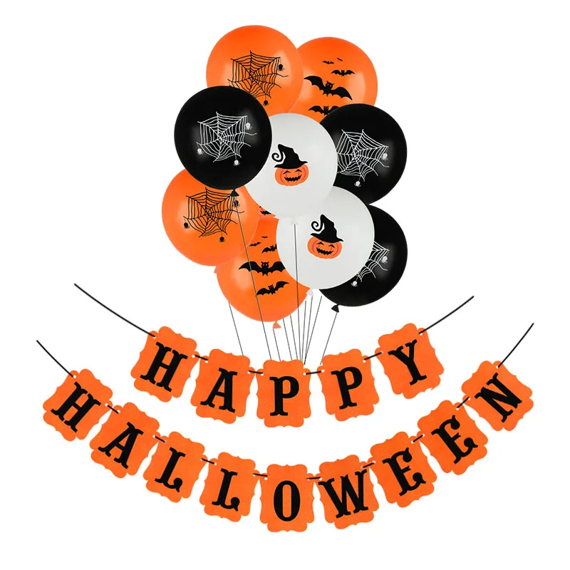 Название: воздушный шар на ХэллоуинМатериал: латексЦвет: оранжевый, черныйРазмер:Воздушный шар: 12 дюймовБаннер: как на картинке